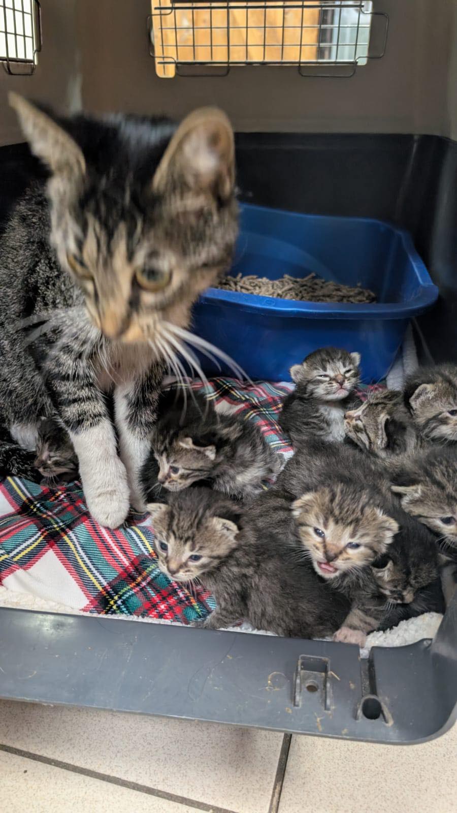 We’re facing yet again, another serious emergency at our Morinville Rescue Centre: A volunteer’s friend discovered two boxes of 13 cats and kittens abandoned on an acreage. These animals are now in our care, but we’re already at capacity with our Morinville facility, currently dealing with an upper respiratory outbreak, leaving us with extremely limited options.