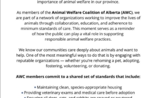 Nov. 20, 2025 - Today, we’re joining our fellow members of the Animal Welfare Coalition of Alberta to share a message about building a stronger animal welfare system – and ....