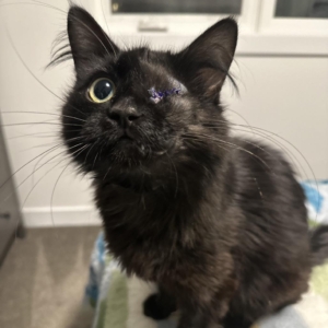 Feb. 18/26 – Meet Big Momma. She came into SCARS in late January with her four kittens after being mauled by a dog and losing her left eye due to severe head trauma. After everything she’s been through, she’s now safely recovering in foster home — resting, gaining weight, and learning that she’s finally safe.