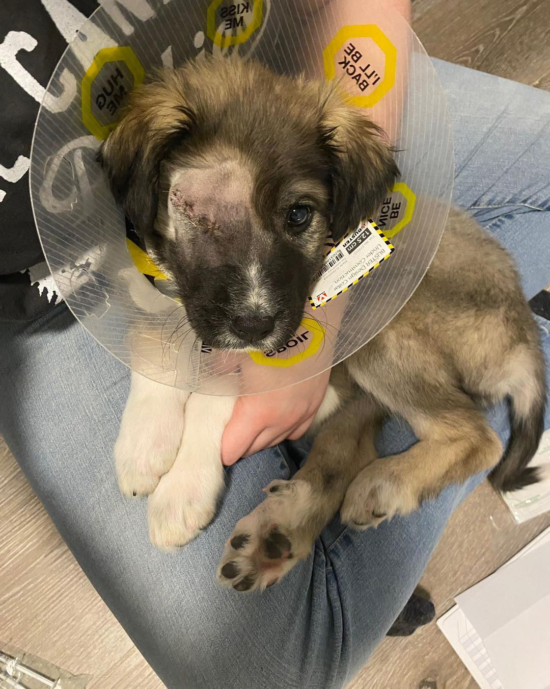 Meet Ed. He was attacked by a larger dog and, sadly, had to have his eye removed to save his life. He is only 9 weeks old and has already shown us what resilience looks like. He’s now in a loving foster home and beginning the healing journey. He’s eating, snuggling, and slowly adapting to life with one eye—every small milestone is a big win.