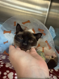 This young and handsome fellow got a little too adventurous and managed to get himself into a serious situation. We do not know how but somehow he degloved part of his back end and part of his legs. He went in for emergency surgery to close and repair as much as possible. So far things are looking healthy but he will remain in veterinary care a little longer to receive regular bandage changes and watch how his skin heals.