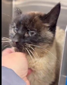 — Update on Lily – She’s missing most of her tail and one ear but she is literally the sweetest cat just trying to get snuggles. Because she was found starving, she’s a prime candidate for feeding syndrome so she is being fed itty-bitty amounts at a time until she can recover.