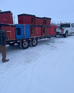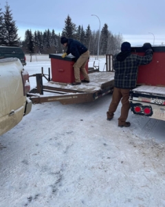 Another 18 dogs will be warmer this winter from this amazing delivery day in Buffalo Lake with our volunteers Andrew, Sylvia, and Todd. We also have to give a huge thank you to Bryce and Zack from SkyFire Energy who built 9 houses for us and graciously delivered them up to Buffalo Lake, and to the team at Wolf Creek Building Supply for sending over a forklift!