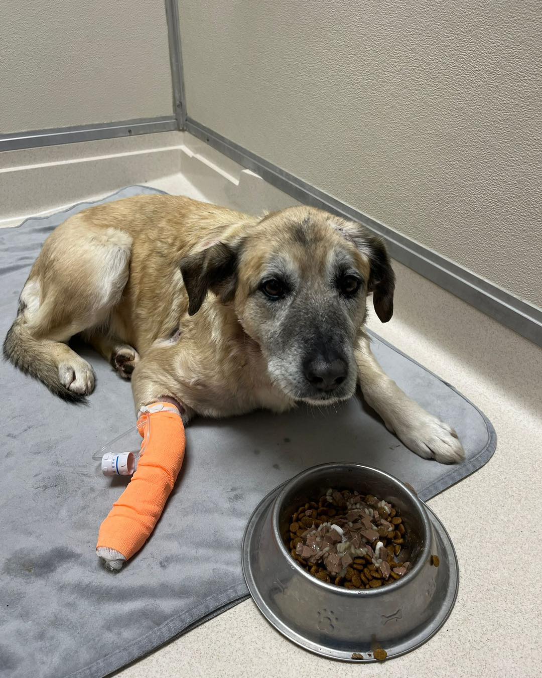He’s healing from bruising in his lungs, a tear in his windpipe, a suspected collapsed lung, and multiple wounds. Right now he’s on three medications and his only job is to rest, feel safe, and recover. And somehow… through all of that… he is the gentlest, calmest little soul.