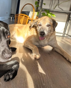 He is one of those rare dogs who feels like an old soul. He doesn’t fuss, doesn’t demand, doesn’t make a scene. He just quietly settles in, lies nearby, and is content simply being close to his people. It’s like he understands everything without needing words.