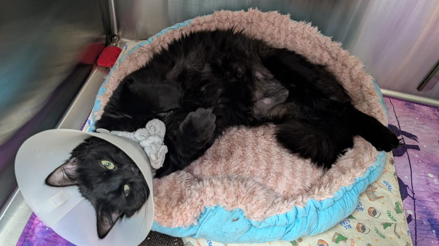 Shaggy is a gentle, easygoing boy with a heart as soft as his name suggests. Life hasn’t always been kind to him—before coming into SCARS Morinville’s care, Shaggy was attacked by a dog and arrived with his leg badly injured and fully exposed. Thanks to lots of love and medical care, he’s healing up beautifully and is just about ready to start the next chapter of his life. Despite everything he’s been through, Shaggy remains the sweetest soul. He adores attention, loves to relax, and takes life at a calm, steady pace. His resilience and gentle nature are truly inspiring, and he’s sure to bring warmth and love into the home lucky enough to call him family.