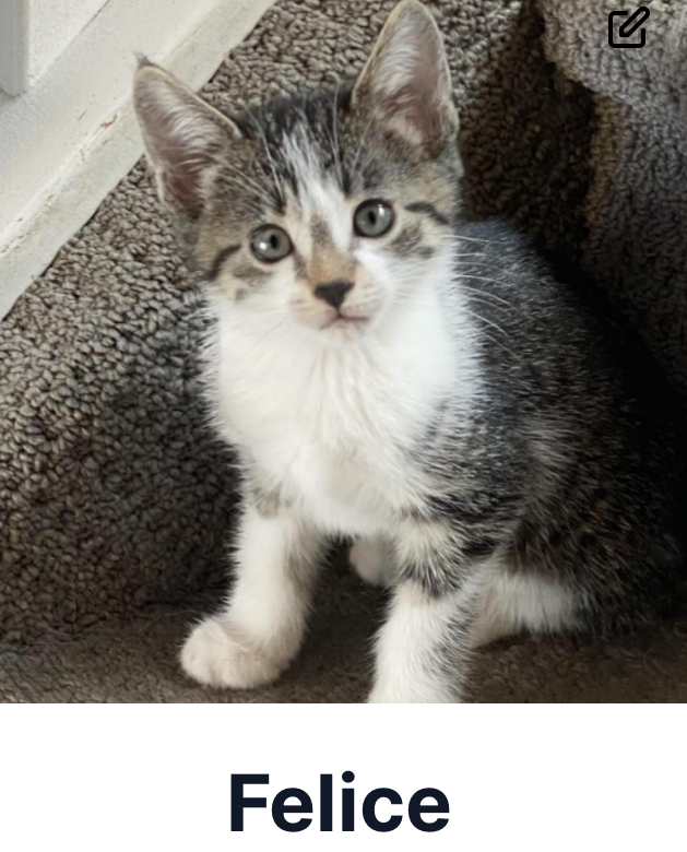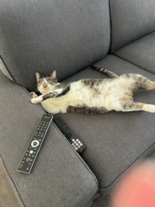 Tonks came first to us from SCARS when we were searching for a pal for our other rescue cat. She is pure love, happiest cuddled on a lap or in someone’s bed all day or flat on her back in the sun!