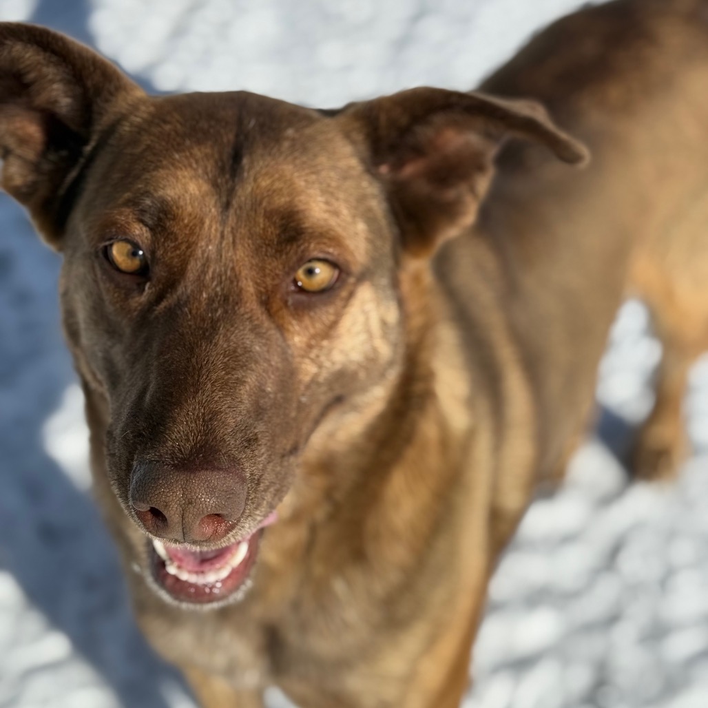 When I first arrived at SCARS, I was very malnourished and unsure of the world around me. I was nervous and frightened, especially of people, though I still allowed gentle touch. With time, kindness, and the support of my dog friends Buddy and Muskwa, everything began to change. Their confidence helped me find my own bravery and taught me that people can be trusted too.