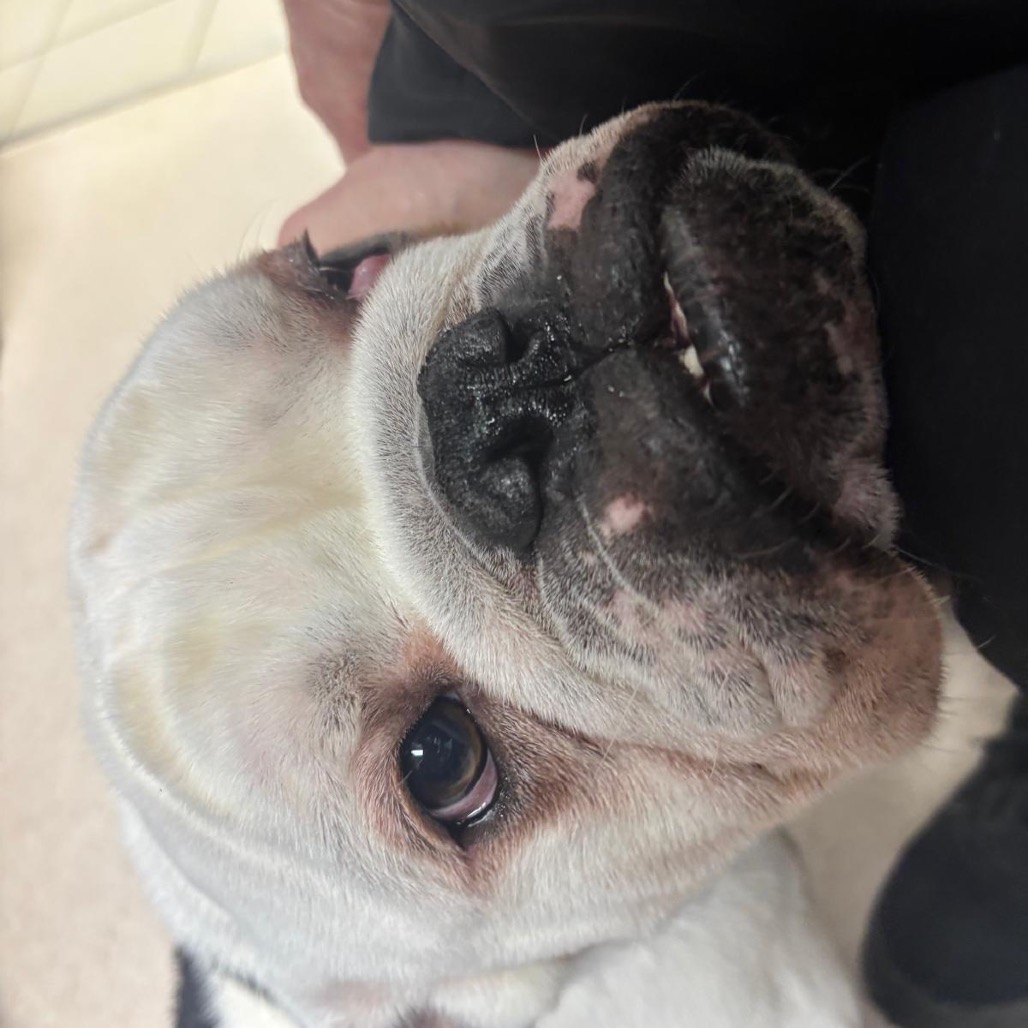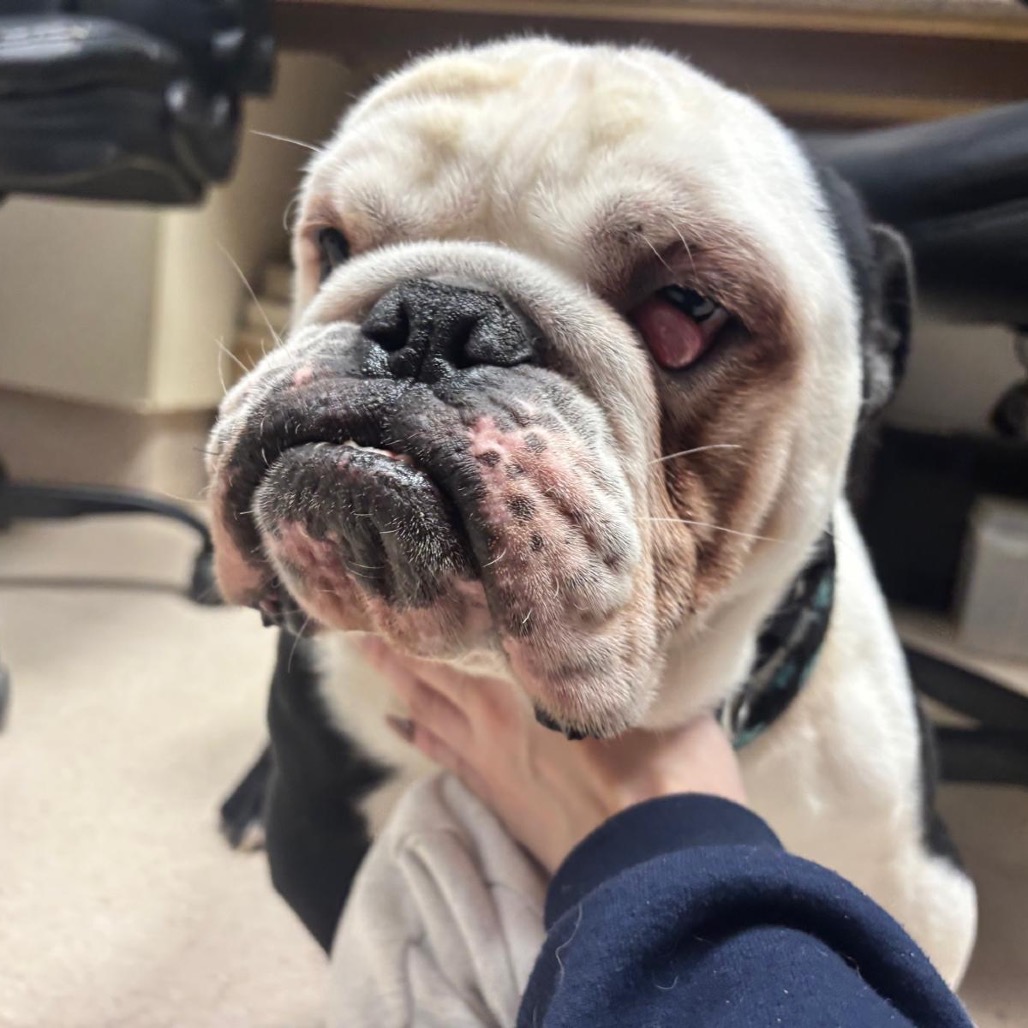 This little guy loves having room to explore, so a secure, fenced yard is a must—he’s got places to go and smells to sniff! Despite a persistent cherry eye (which has been operated on), Meatloaf is doing great with his twice-daily eye medication, and he's a champ about it.