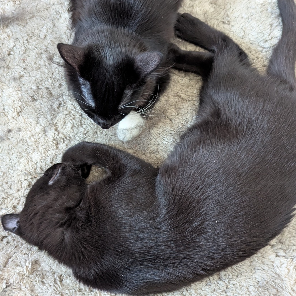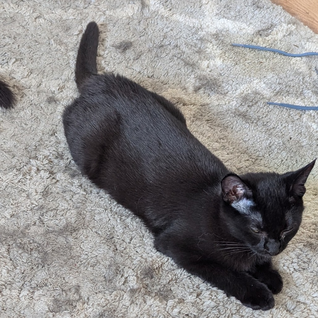 Hi, I'm Birch! I came to SCARS with my mom and four siblings, but now it's just me and my sister Aspen looking for our forever homes. I recently moved into the main house with my foster brothers, and I've gotten so brave! I'm still a kitten so I need lots of time to play all day, but when I'm done playing, I love to have a nice long nap on mom's lap. I'm a super happy boy who loves attention, and I'm pretty well behaved for being just 4 months old. I let mom sleep most of the night, and also like to sleep on the bed with her. I don't mind my big foster brother dog, and get along great with my foster brother cat! I used to be a little bit shy, but I'm getting more outgoing every day and I'm sure we'll be best friends really soon! I'm really good at playing by myself, I'll keep myself entertained for a long time with just one toy. Sometimes I growl when I catch toys, but I'm not mean, I'm just showing how good of a hunter I am! I'd love to be adopted with my sister Aspen, but if you only have room for one kitty, that's okay too! If you're looking for a goofy, loveable snuggle bug who is getting more confident every day, please consider me!