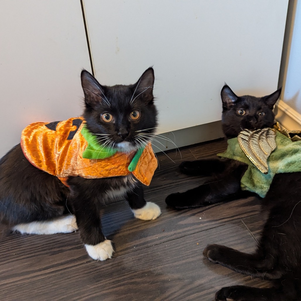 Hi, I'm Aspen! I came to SCARS with my mom and four siblings, but now it's just me and my brother Birch looking for our forever homes. I recently moved to the main house with my foster brothers, and I've gotten pretty brave! I'm still a kitten, so I like to play a lot during the day. Although I'm not the most snuggly cat, I do prefer to be close to you most of the time. I used to be pretty shy, but I'm getting more outgoing every day. I am pretty well behaved for being just 4 months old. I like to sleep next to mom on the bed at night sometimes, and Birch and I usually let her sleep all night until we get bored in the morning. I used to be a little bit iffy about people touching me, but now I'm starting to think pets are pretty great. I might become a bit more snuggly as I get older, but no promises! I'd love to be adopted with my brother Birch, but as long as you have the time for me, I think I'd be okay on my own or with another confident kitty in the house. If you're looking for a sweet girl who loves to play and you're okay with a not-so-snuggly kitty, please consider me!
