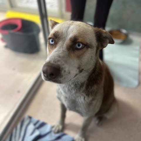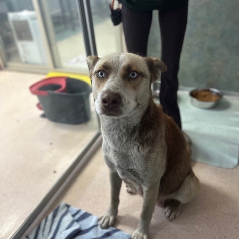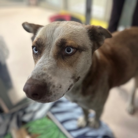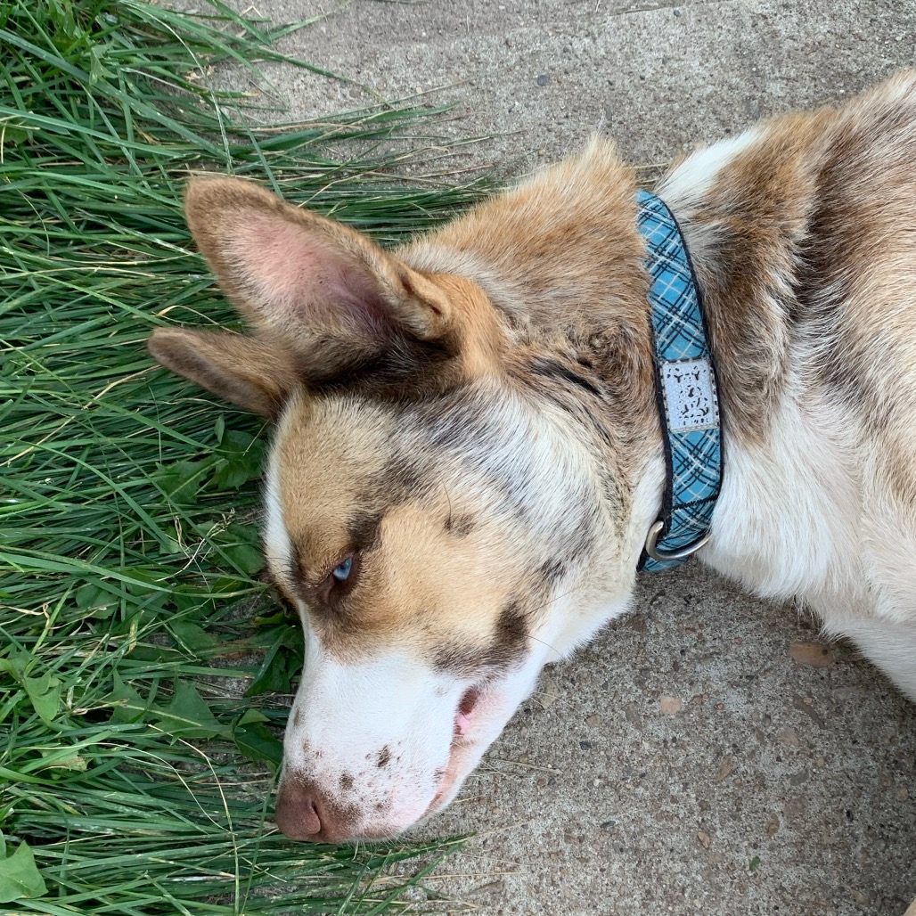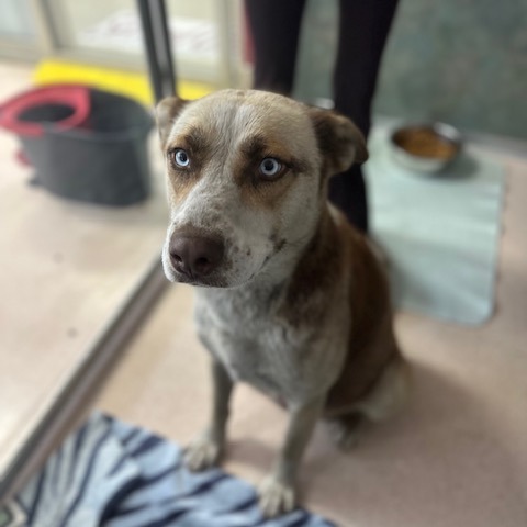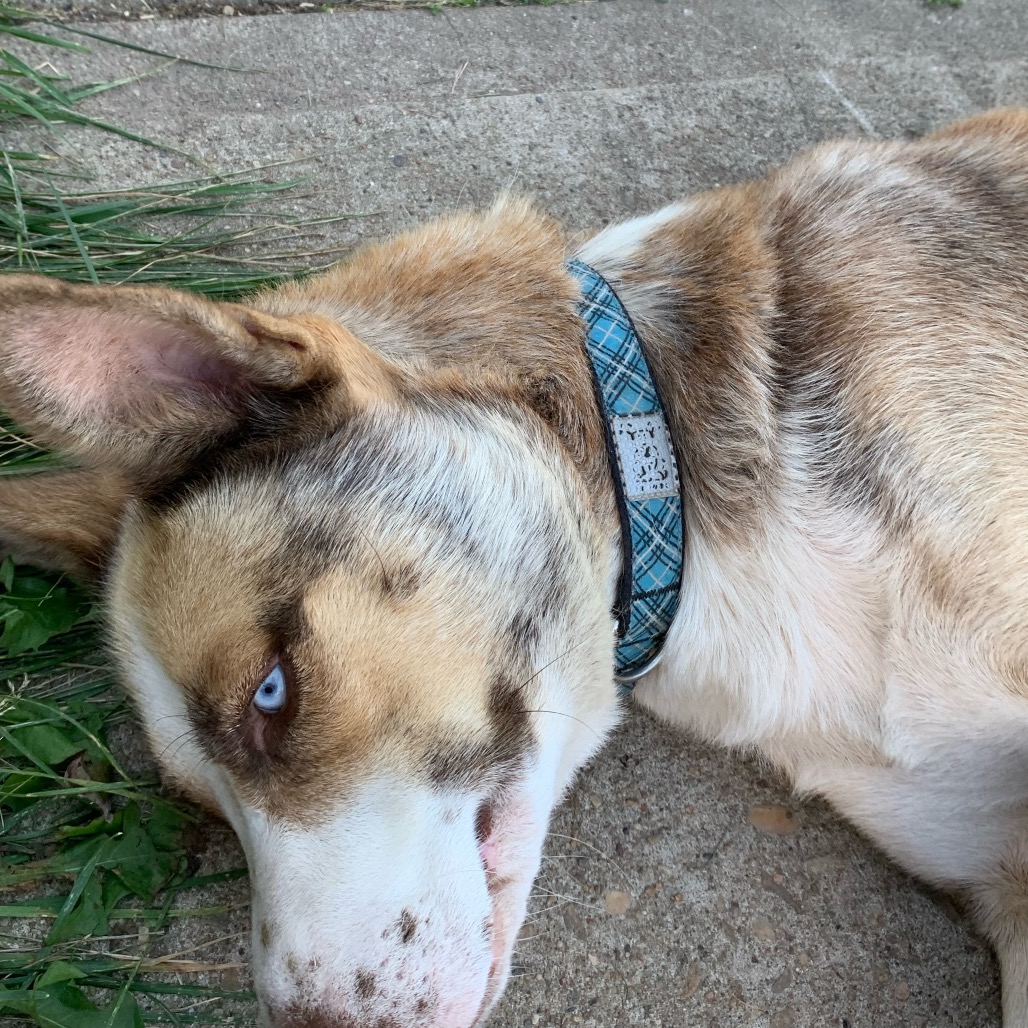I have so much love to give! I try to be respectful of boundaries, but I can get excited and sometimes jump up — don’t worry, I’m learning to sit. I already walk beautifully on a leash, and I’m ready to be in a loving home where I can show just how awesome I am. My pale blue eyes reach deep into your heart, and I’m ready to be just Alaska — not Mama anymore. I’ll need a little time with house training, but I’m a fast learner and promise to give you endless affection in return.