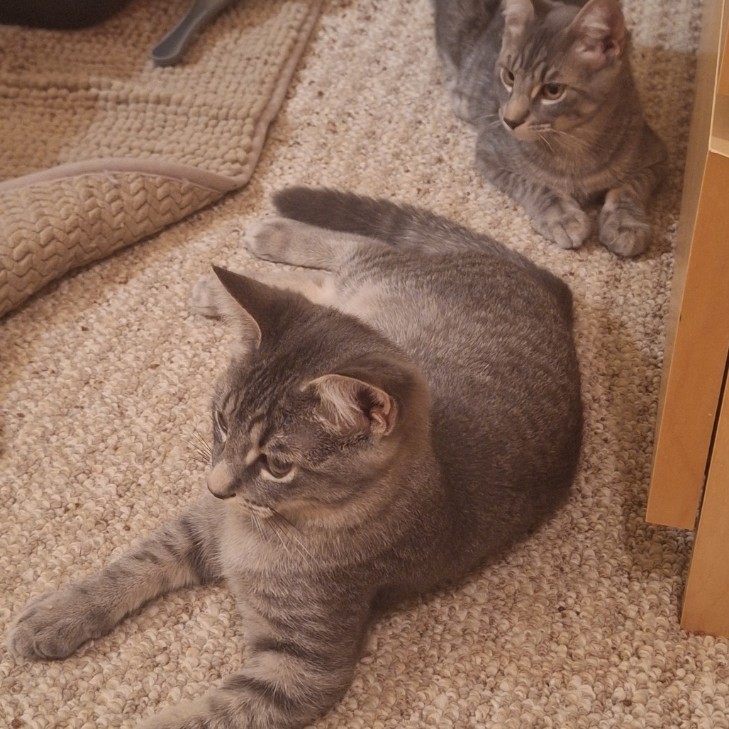 I’m Licorice, the other Tabby Bro, but with an ever-so-handsome rounder face. I’m super fuzzy and have learned over time that being petted and snuggled is the best thing in the world, even though I’m still pretty shy around new people. Once I trust you though, watch out for the head bumps! I may just melt your heart, so consider yourself warned. I love pretty much any kitten food and am great at using the litterbox. My little sister, Ginger, loves to spend time with me. I’m showing her that humans can be trusted while also keeping them busy petting me. I’m a great influence on her and I also make it easier for her to have her space when she needs it! So if you’re looking for two times the love and two times the fun, maybe consider adopting us together!