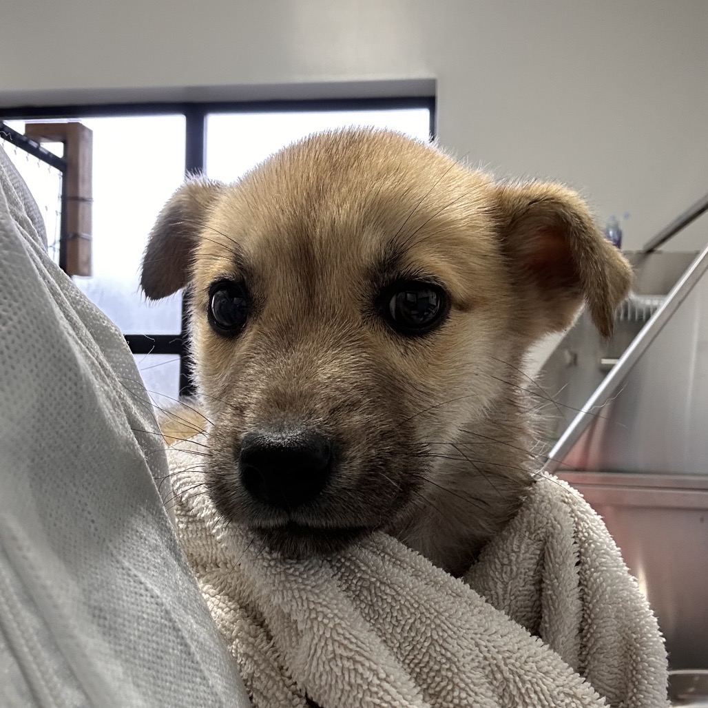 I’m just a happy puppy who’s still a little shy, but every day I’m coming out of my shell more and more. Even though I haven’t been in my foster home very long, I already love playing with my big foster brother — he’s teaching me that the world is a fun and safe place.
