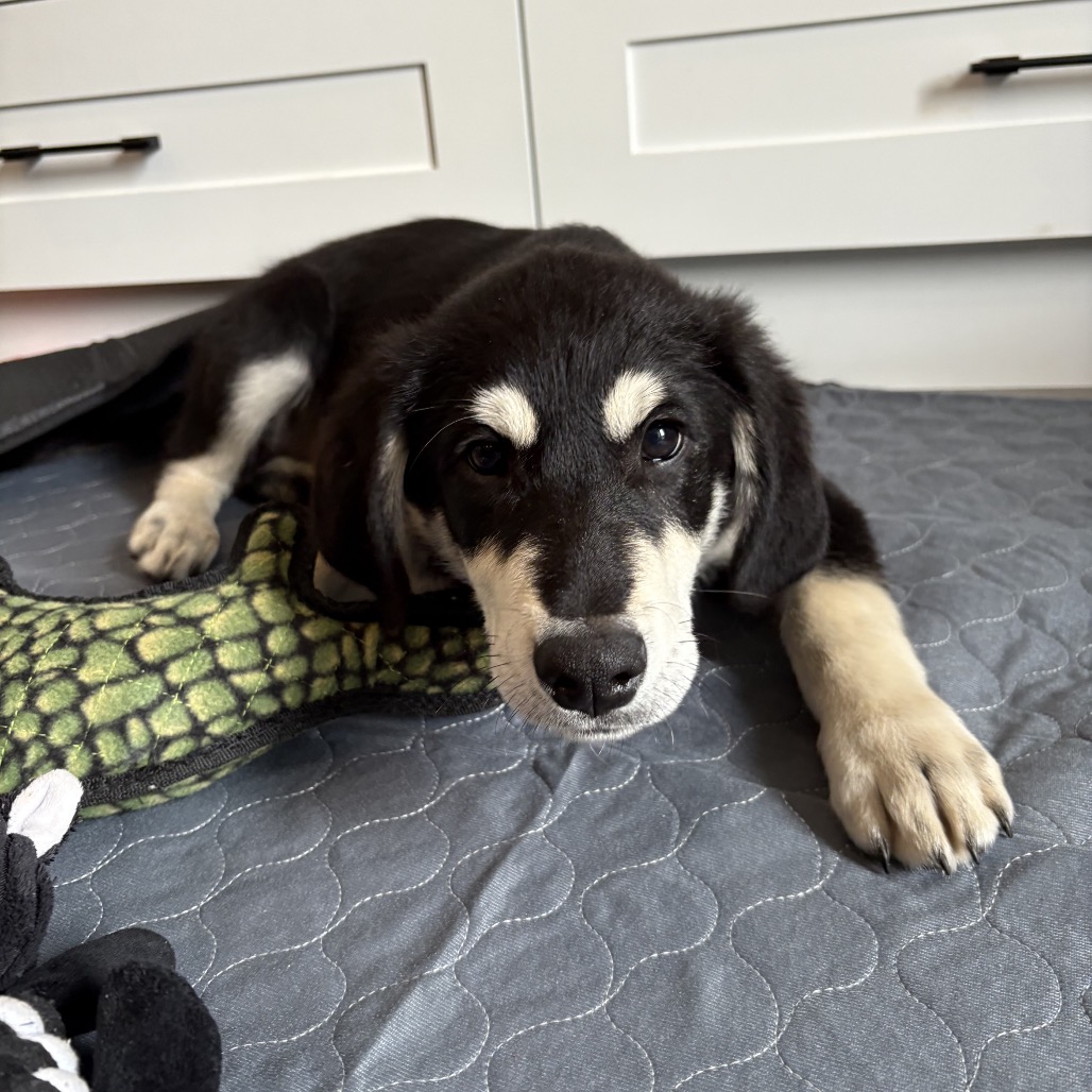 I'm working hard on my kennel time and getting the hang of potty training, but I'm a quick learner. Oh, and I sleep through the night (well, most nights—I'm a good boy, I promise!). 💕As I am pretty timid, I would love to have another furry friend in the home, to show me the ropes or lots of socializing for me with other furry friends.