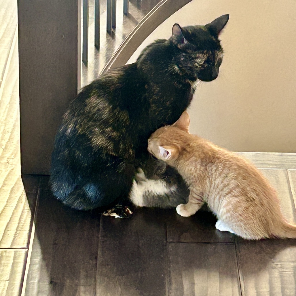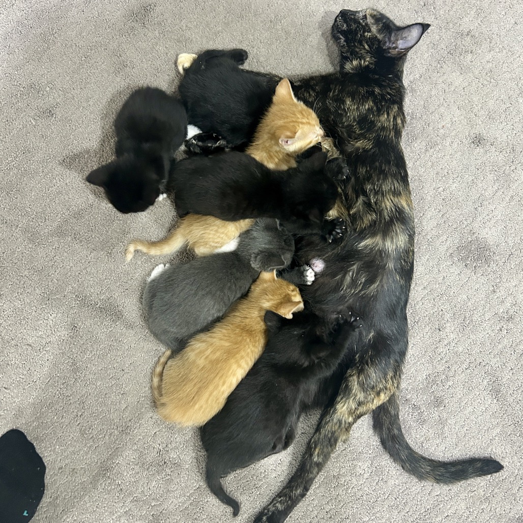 I came into care as a feral mama with 11 tiny babies, and along the way I also helped raise 6 more kittens who didn’t have a mom of their own. I loved and protected all 17 kittens, teaching them how to be safe, confident, and loved. Now that my job as a mama is finally done, it’s my turn to learn what it means to simply be a cat.