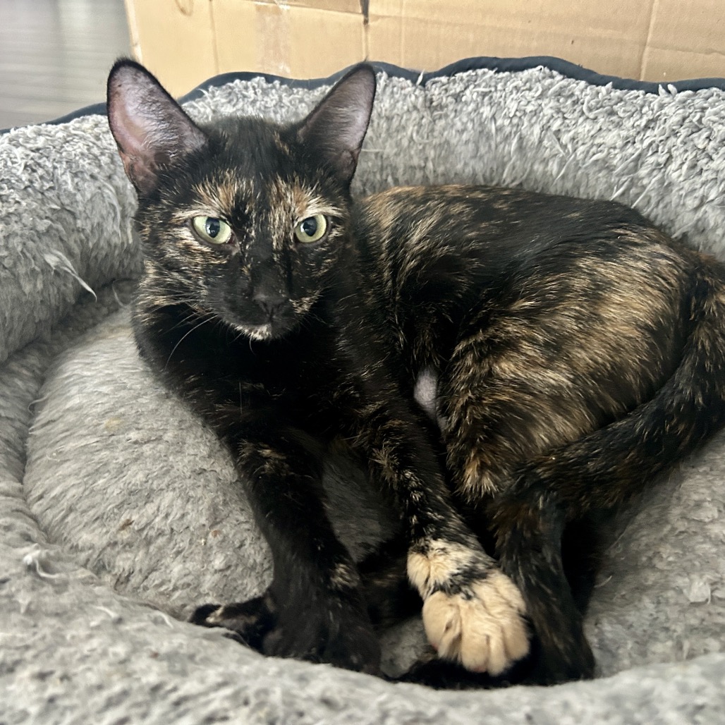 I get along well with other cats and find comfort in their presence. I’m not sure how I feel about dogs. Because I can be easily overwhelmed, a home with older children who can respect my boundaries is very important for me. I do have excellent litter box manners and take pride in keeping my space tidy.