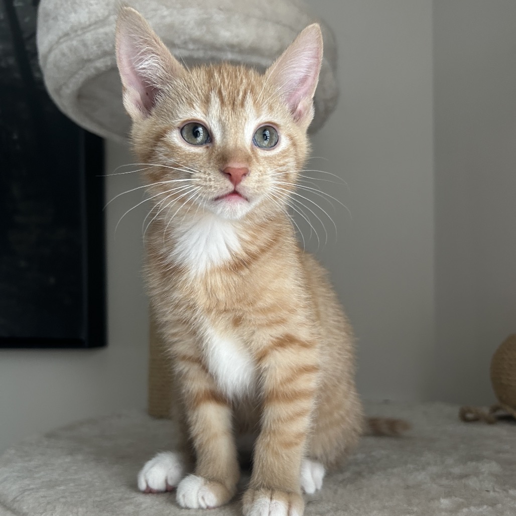 I’m a playful, cheerful little guy who loves to keep things fun. Toys? I’m on them in seconds. A new tunnel? I’m the first one through it. Another kitten wants to wrestle? Perfect—that’s my specialty. I’ve got plenty of energy, but I’m also a sweet, friendly kitten who enjoys being picked up, cuddled, and told how handsome I am (trust me, I never get tired of hearing it).