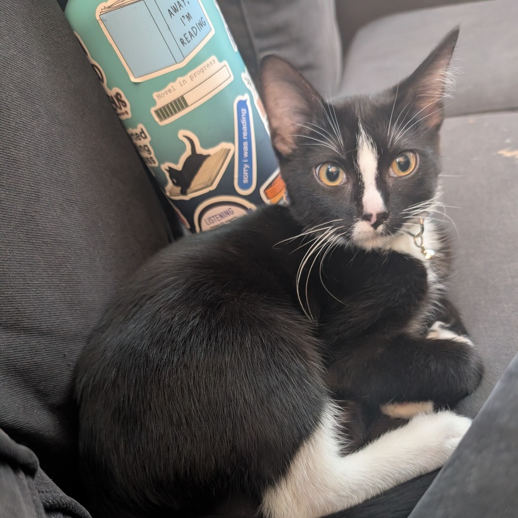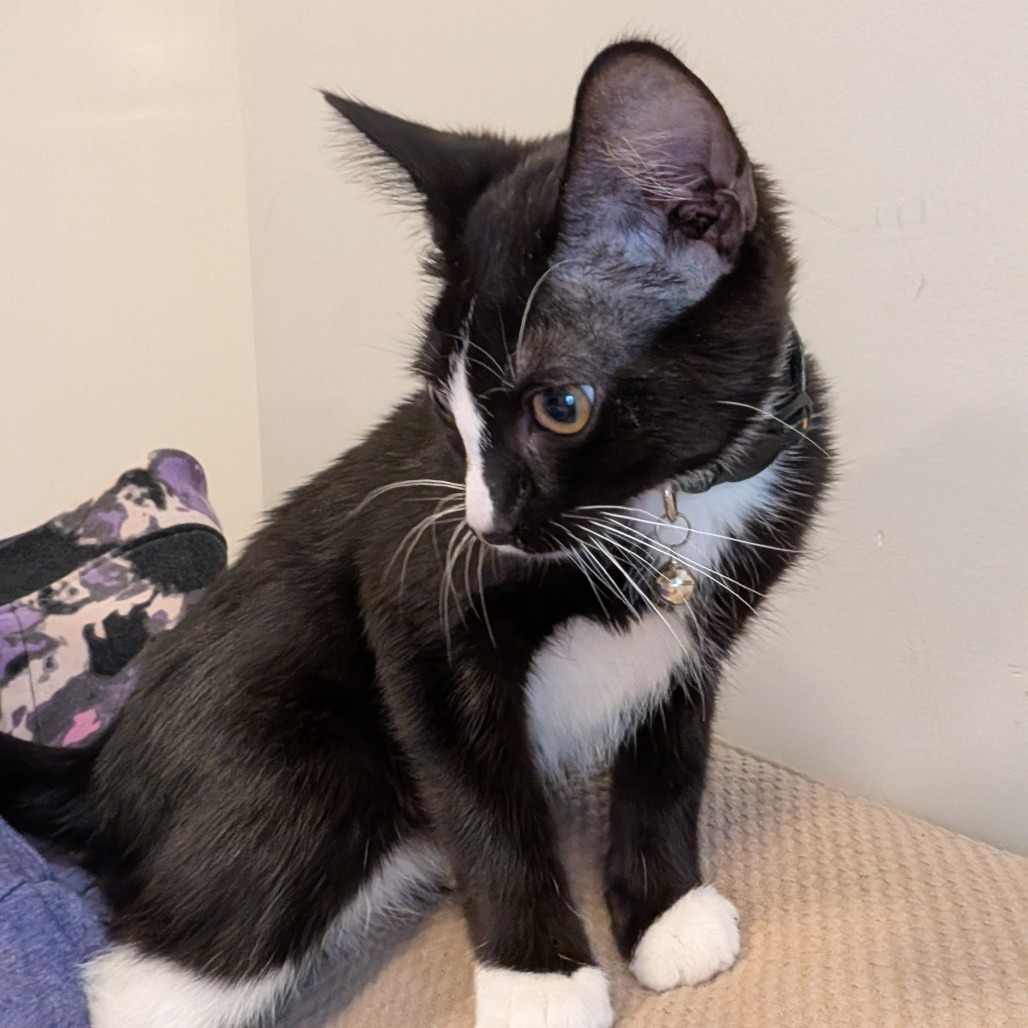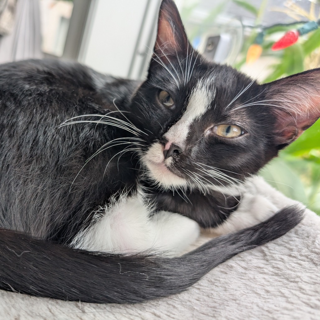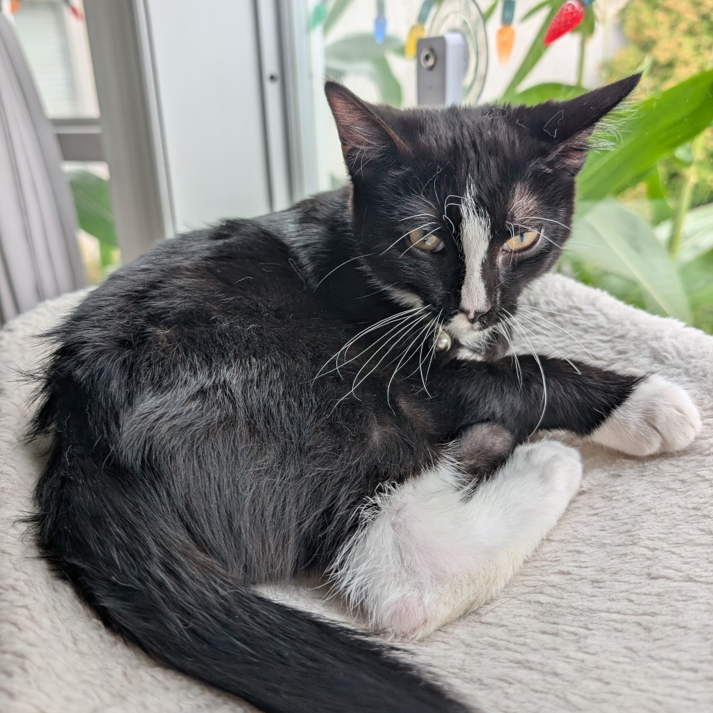 I really like standing on Foster Mom’s shoulder, with my ribs against her ear so she can hear how loud I’m purring. And I climb up on Foster dad when he’s in his big chair, so that I can curl up on his chest and get scratches.