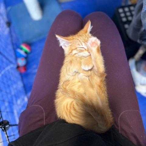 Jack-o-Lantern’s the name but you can call me Jack. I’m an extremely cuddly little dude who loves to make my way up on top of your shoulders so I can purr with my little motor right beside your ear. When I’m not doing that, I’d also love to nap on your lap while you massage my cute little toe beans. I’m fully litter trained and a pro at chasing balls, toys and anything that I can find to play with. I love to play until I get tired and then find a nice cozy spot to rest-up for more playing.