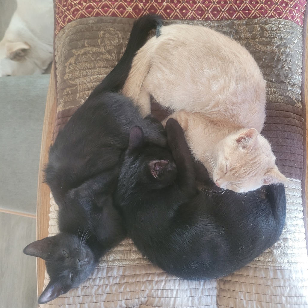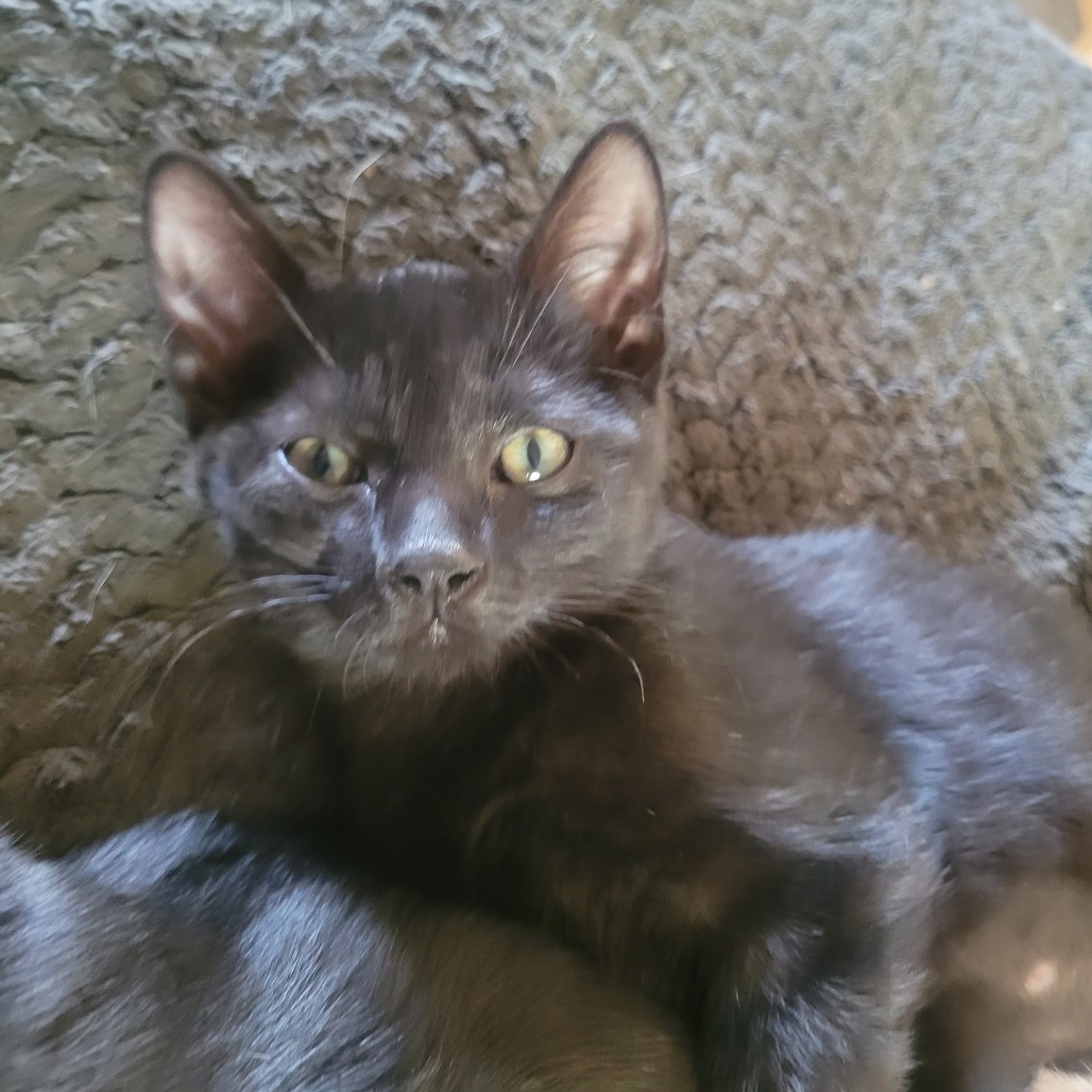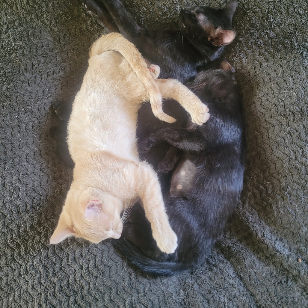Hi I am Egg of the Breakfast kitty trio. I am sweet, curious and cuddly just like my brothers but I prefer to watch and assess things first before I dive in. I am much more demure than my brothers I live with 2 adult cats and an adult dog that I like to nap close to but my favorite thing is a sleep pile with Bacon and Hashbrown. I too have mastered the art of purring and will find a warm spot to nestle on my humans while I purr away. I am a calm and gentle girl who loves a good pet and snuggle. If you are looking for more than 1 kitty, I know of one or 2 others that could join me. Bacon and Hashbrown are my awesome siblings and we get along famously.