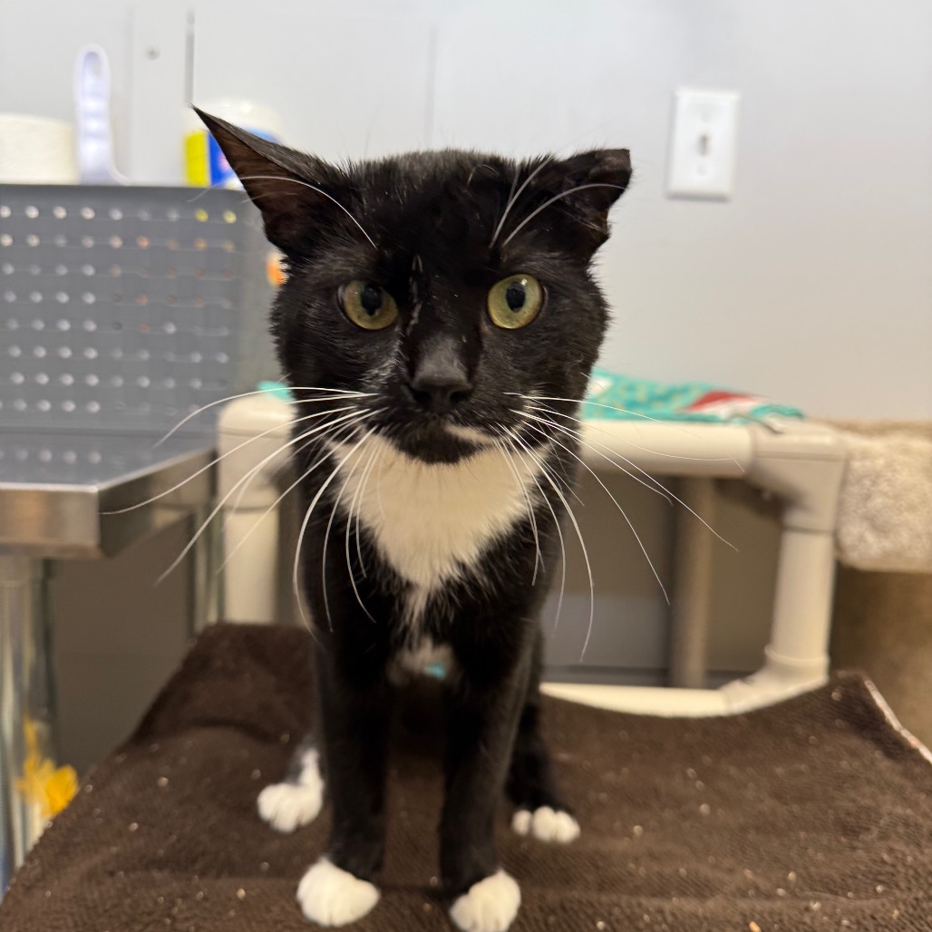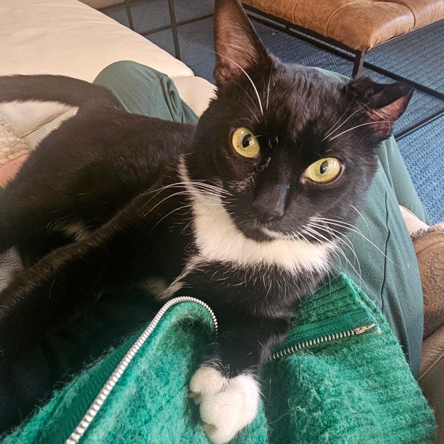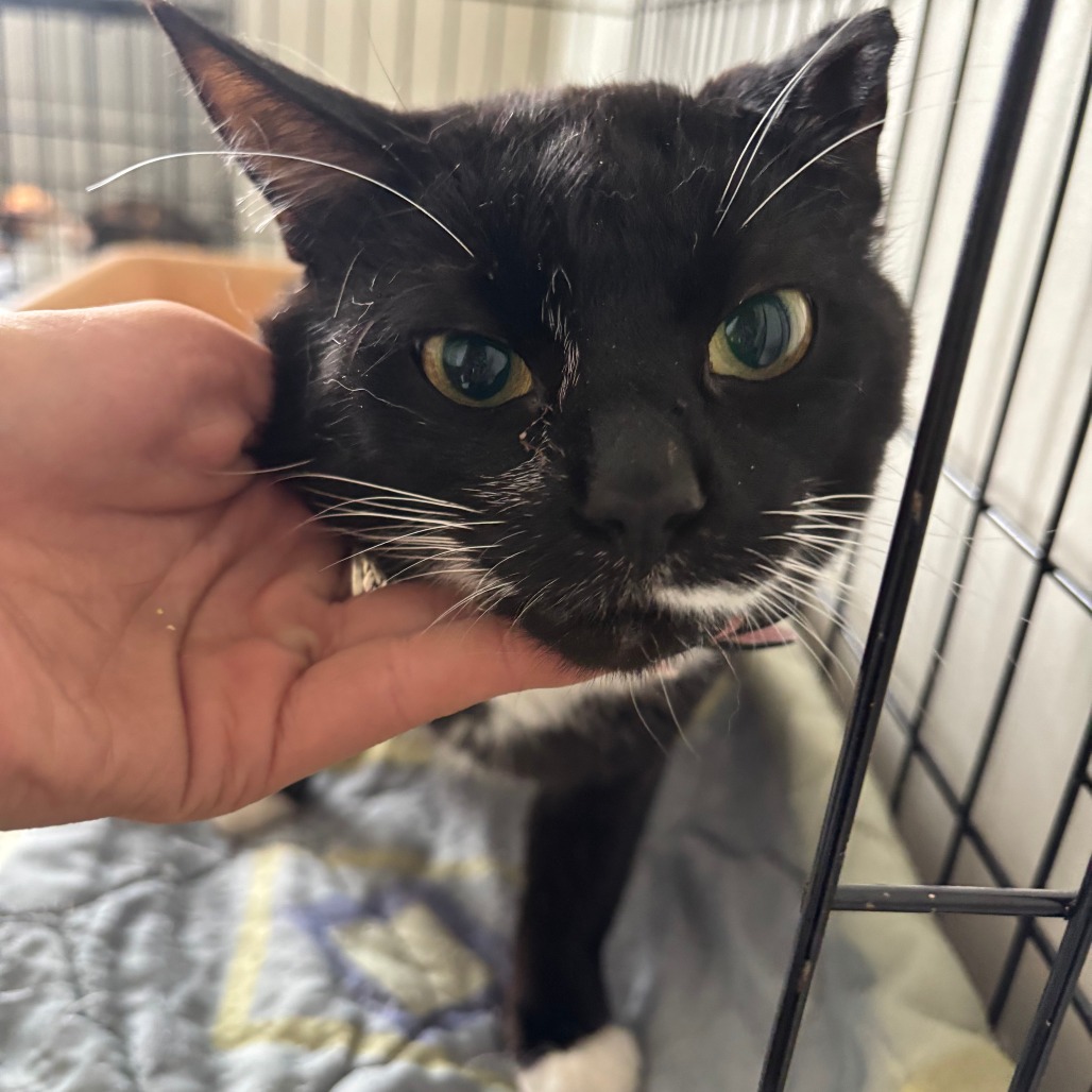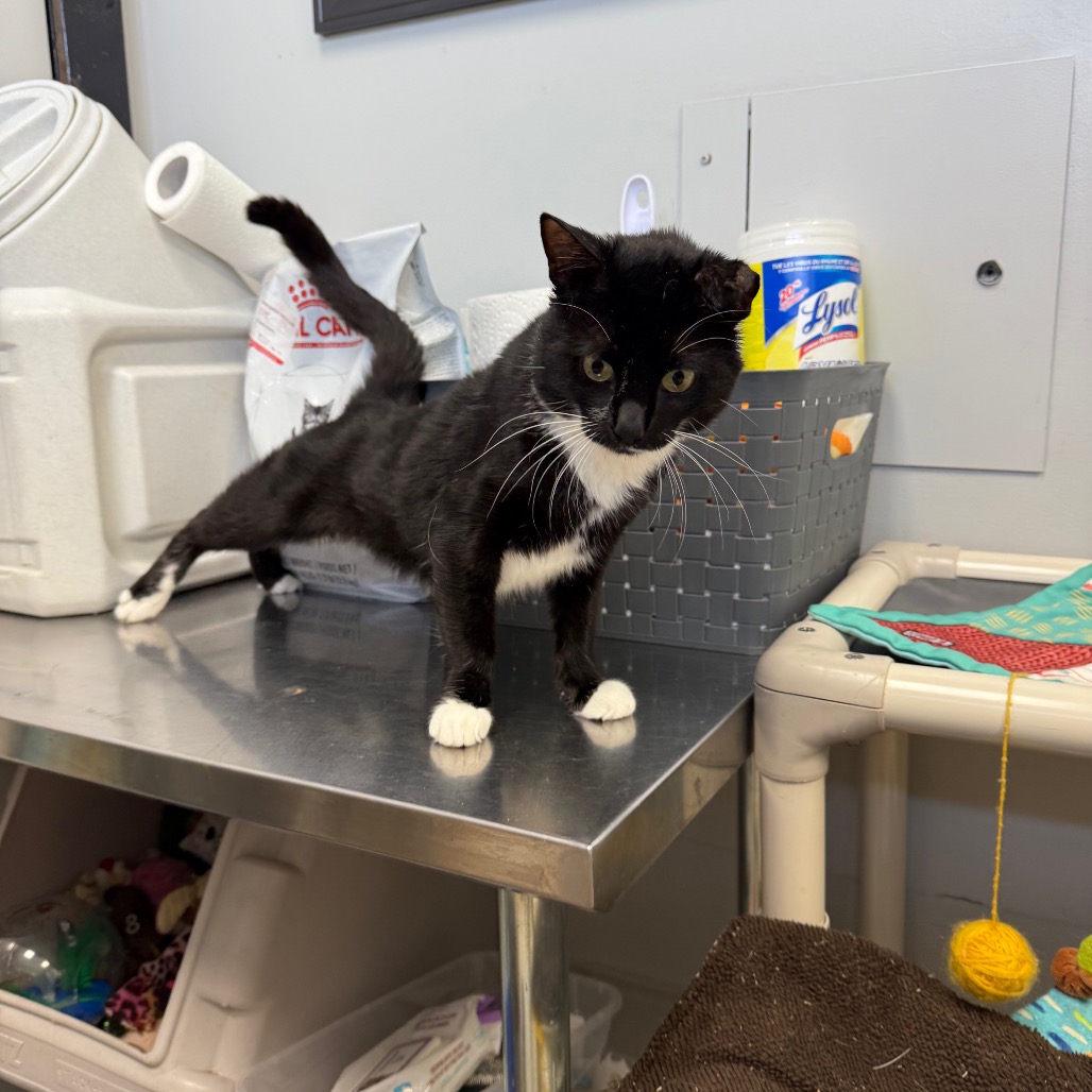 Wiggles is an affectionate cat that is curious and wants to explore whatever you are doing. He is a great cuddler. Wiggles walks like he has been riding a horse all day, but it doesn't seem to bother him. Wiggles is currently in a house with young kids and he is very patient. Wiggles is also in a house with a dog without concern. He uses the litter box without issue.