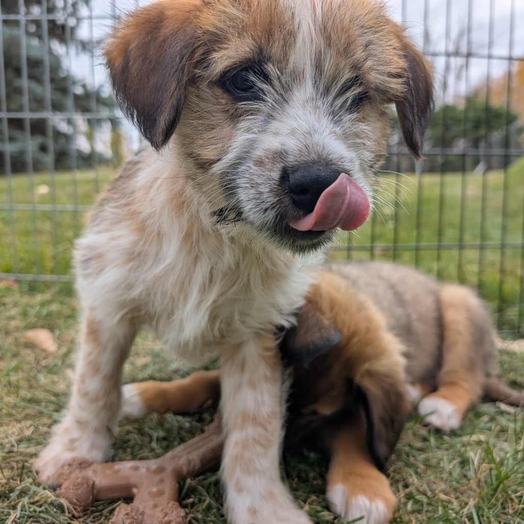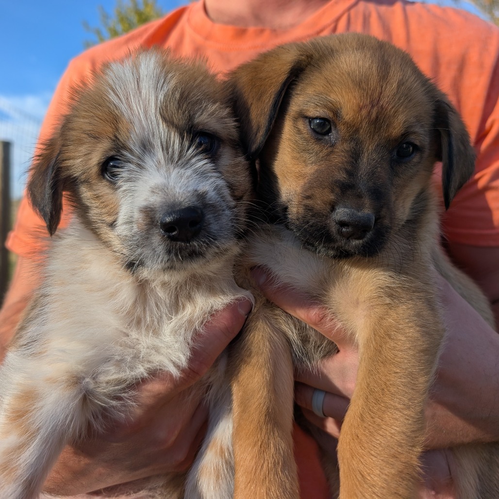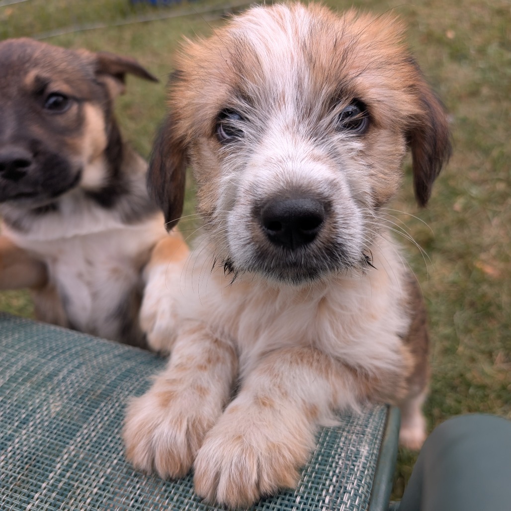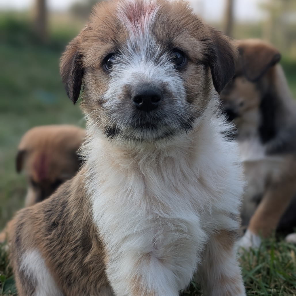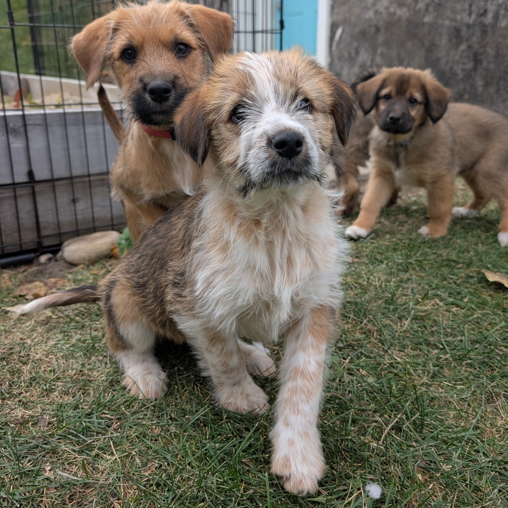 Hello! We are the Apple litter. We are a litter of adorable VERY mixed breeds. Our mom was a small/medium terrier - and we have two different dads (one of whom was a bullmastiff mix). So please don't apply for us thinking we are going to be smaller dogs, because we likely will not be! Our caregivers have sent away 2 different DNA tests as they are very curious to our mixes.