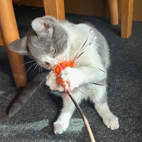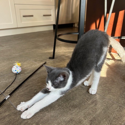 Zeus has a big personality and an even bigger appetite! When it’s mealtime, he’s not shy about letting you know—this boy can get vocal and will happily remind you that his bowl isn’t going to fill itself. His tiny meows are as dramatic as they are adorable.