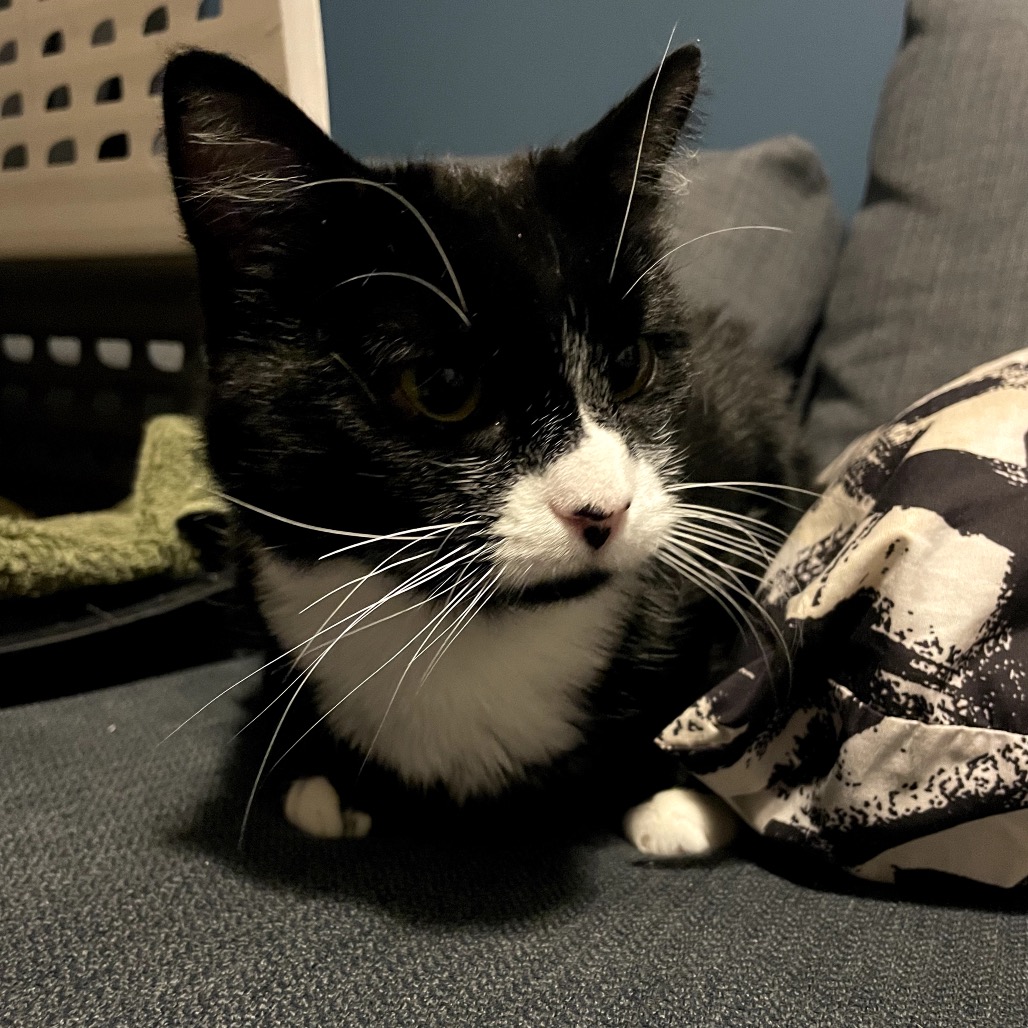 Hi, I’m Cricket! I’m the sweetest girl in the world and I love to start purring as soon as I see you. I am extremely laidback and take everything in stride. I love hanging out with you on the couch, and I am learning to enjoy being a lap cat. At first my people thought I was low energy, but as I learn to be in a house I have shown a very playful side. I love any toys that mimic hunting, and my favourite is a toy that moves a string back and forth under fabric. I will entertain you for hours. I am a very polite and quiet girl and will not wake you up in the morning or meow all day long. I do well with other cats, and I would enjoy a home where there is another cat that would like to play with me. I am very respectful if they say no however, and I know how to keep to myself. I would probably be ok with a lower energy dog, but I have not been tried with them. I do enjoy a special diet to keep my skin looking good, on this diet I have absolutely zero issues. Because I am such an easy going girl with a playful side I would probably do well in a variety of households, but my preferred ones would not be very noisy or busy.