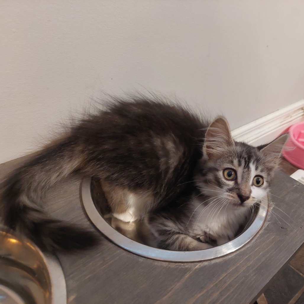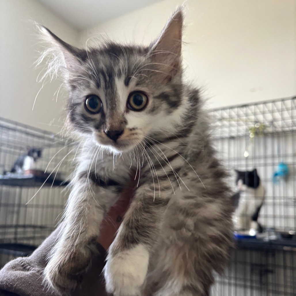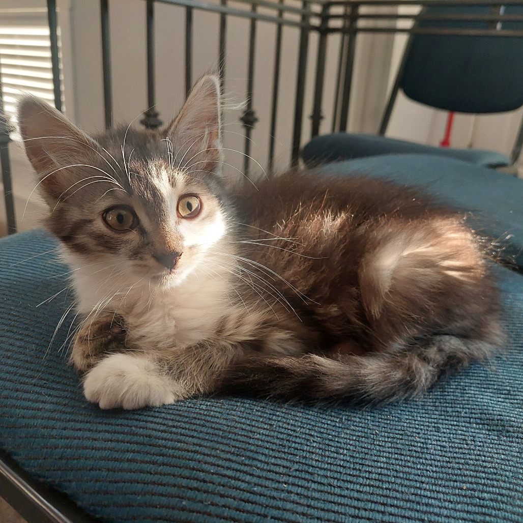 My cute expressions caught your attention!!!! I'm Moony, a quiet and curious boy. I love to play with my siblings and am getting used to my foster family. I do not mind when the kids pick me up and am starting to love their cuddles. It has taken me a couple weeks, but now I follow them around and jump on them for attention. There is a large dog in my foster house, I do not play with her, but I am fine to be around her. My favorite thing to do is play with my siblings, so if you have another cat, that would be a bonus. It may take me a moment to show you how sweet I am, but give me a week and I'll blend right in!!!