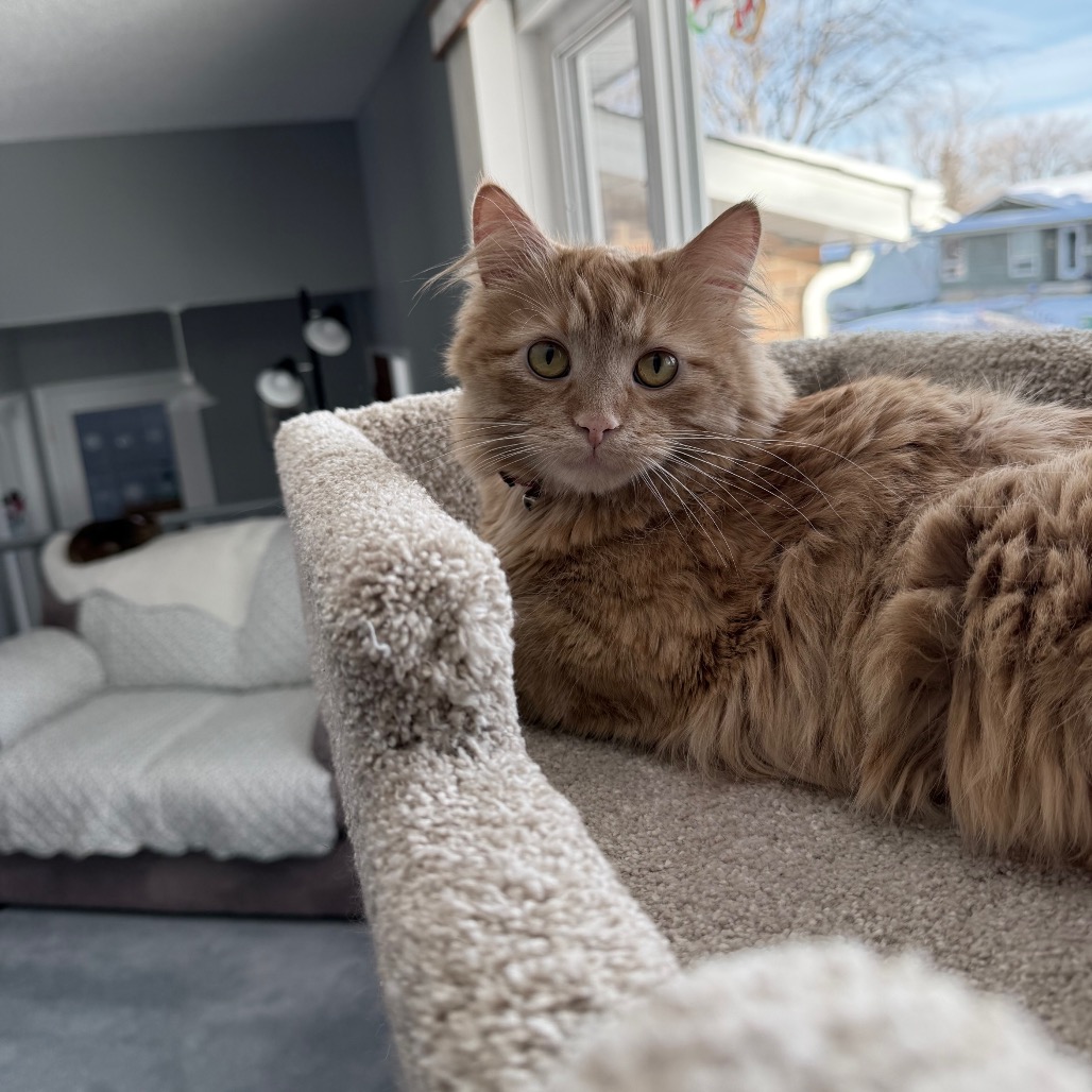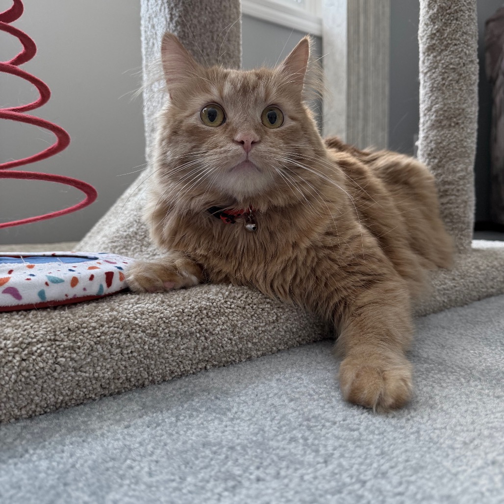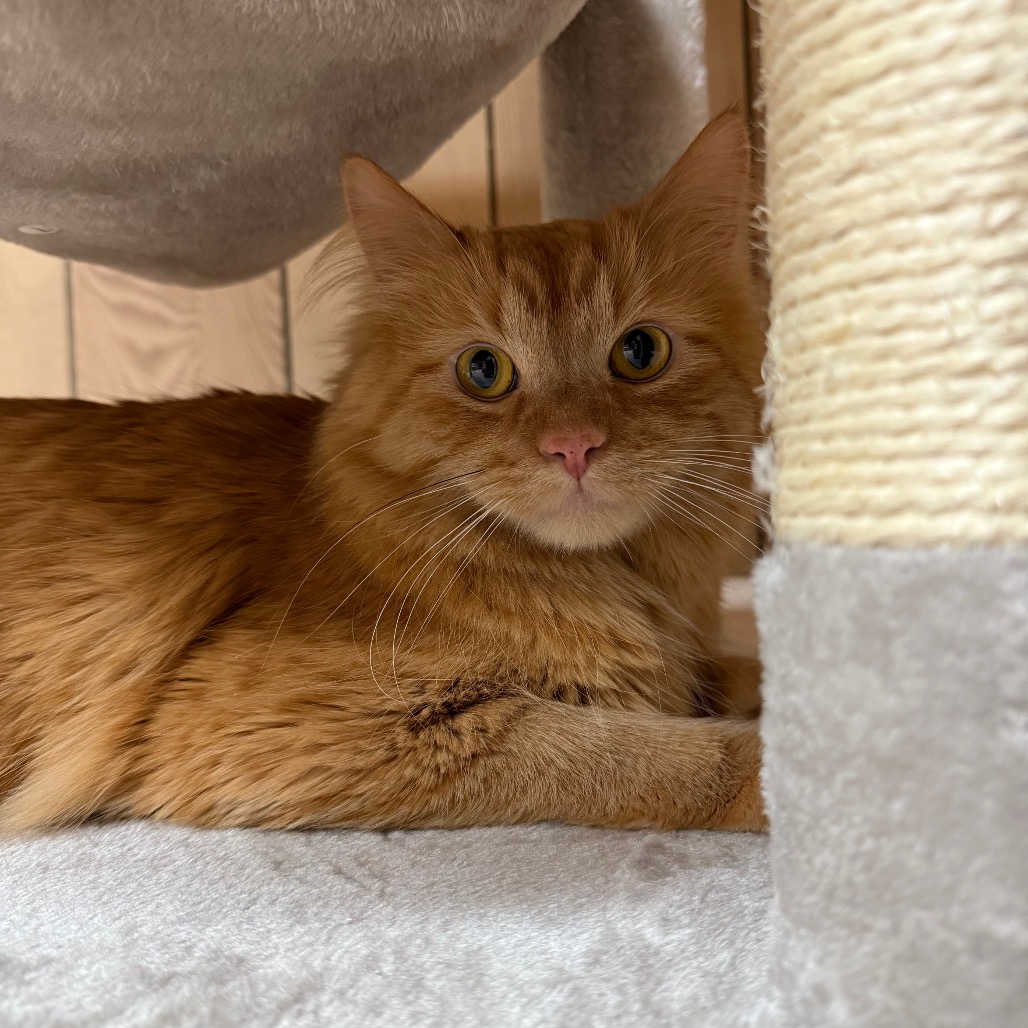 One notable thing about me is my heart is a little bit special. I have Hypertrophic Obstructive Cardiomyopathy (HOCM) which means part of my heart muscle is thicker causing not as efficient blood flow. What that means for my forever family is maintaining & monitoring good heart health through regular vet checks and keeping my weight in check. HOCM can shorten the lives of some cats, but many can lead long and fulfilling lives!