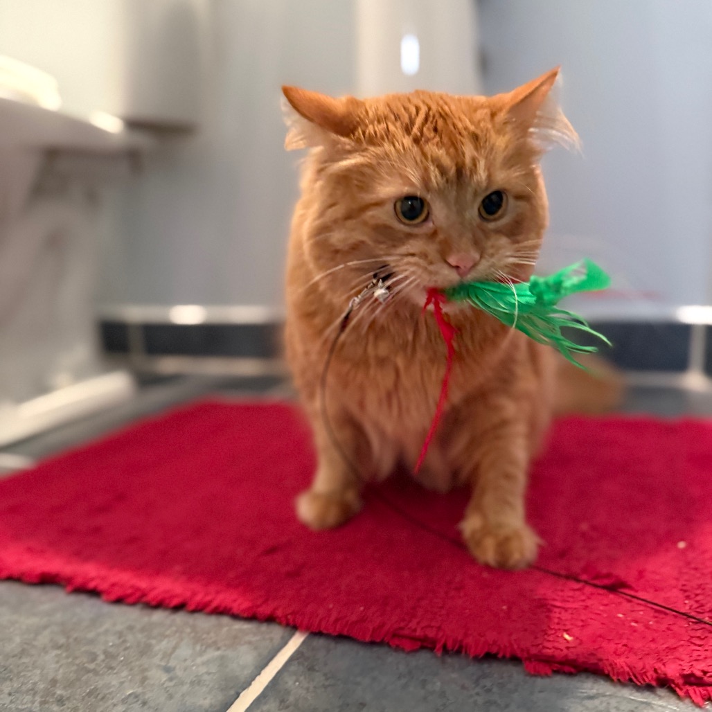 I have a very playful side and will zoom across the room, especially when a feather wand is involved. I love to catch the prey and take off with my prize. And I must say that I absolutely LOVE Churu tube treats! They are my favourite snack by far 😋!!
