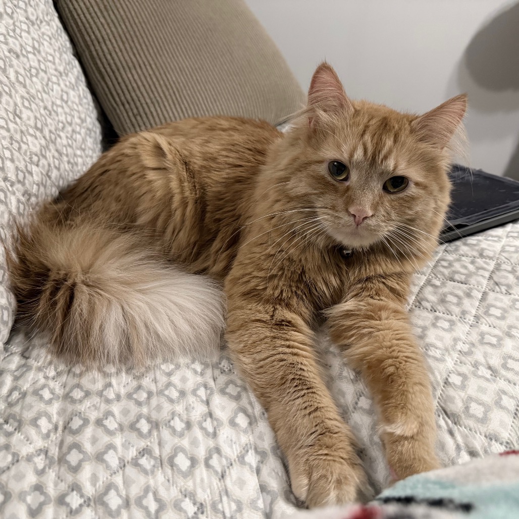 When we first met I can be a bit shy, but it doesn’t take me long to warm up and start demanding affection. I'll happily cozy up to you, whether you are binge watching your favorite shows, reading the latest bestseller, or just relaxing after a long day.