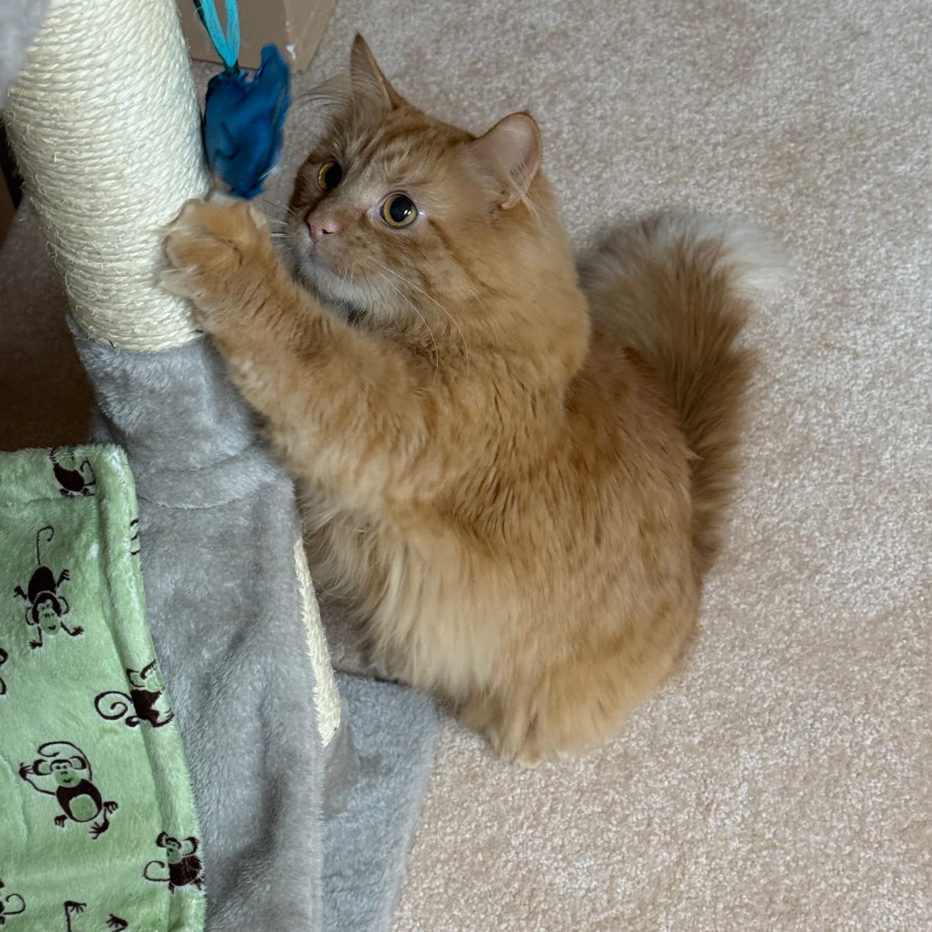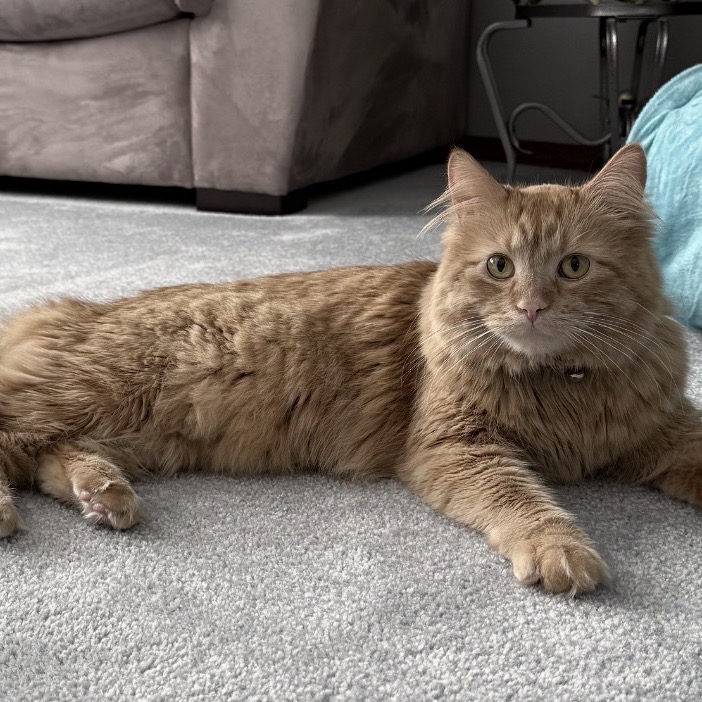 Hello there! I'm Tig! Foster mom affectionately calls me her Tiggy Bear, with my cute pink nose and toe beans, and the fluffiest tail in town! I love to be near her and will come running when she calls my name. I flop over and roll around, as she rubs my belly and gives me lots of pets. When I’m happy my paws will constantly knead and make air biscuits.