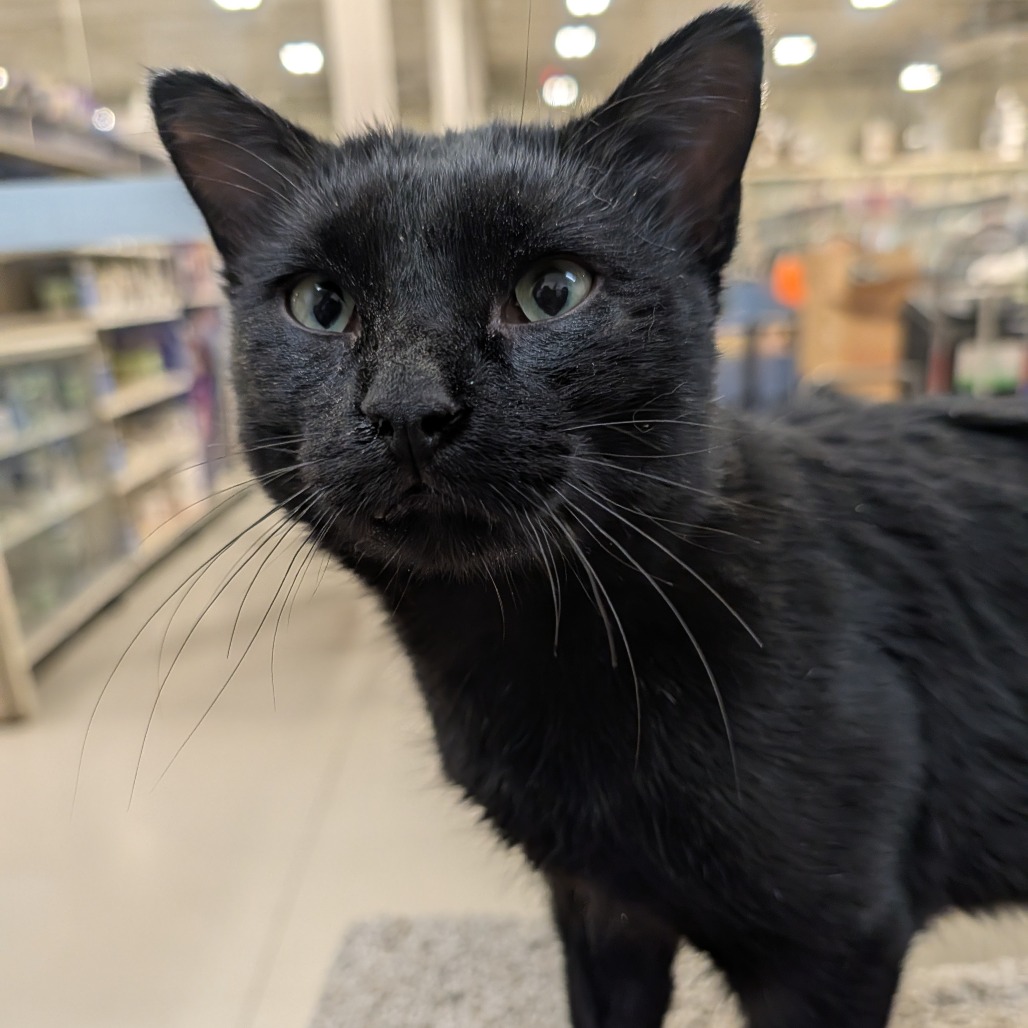Yes I am totally black like my name. And I LOVE people including kids. Cats are great but not sure about dogs. I think with a slow intro I'd be good. I love pets amd will lean in for them whenever I can. Some say I have a super cute voice. The volunteers say I am super cute and super sweet. Want to meet me to see what you think? I would love to come home with you.