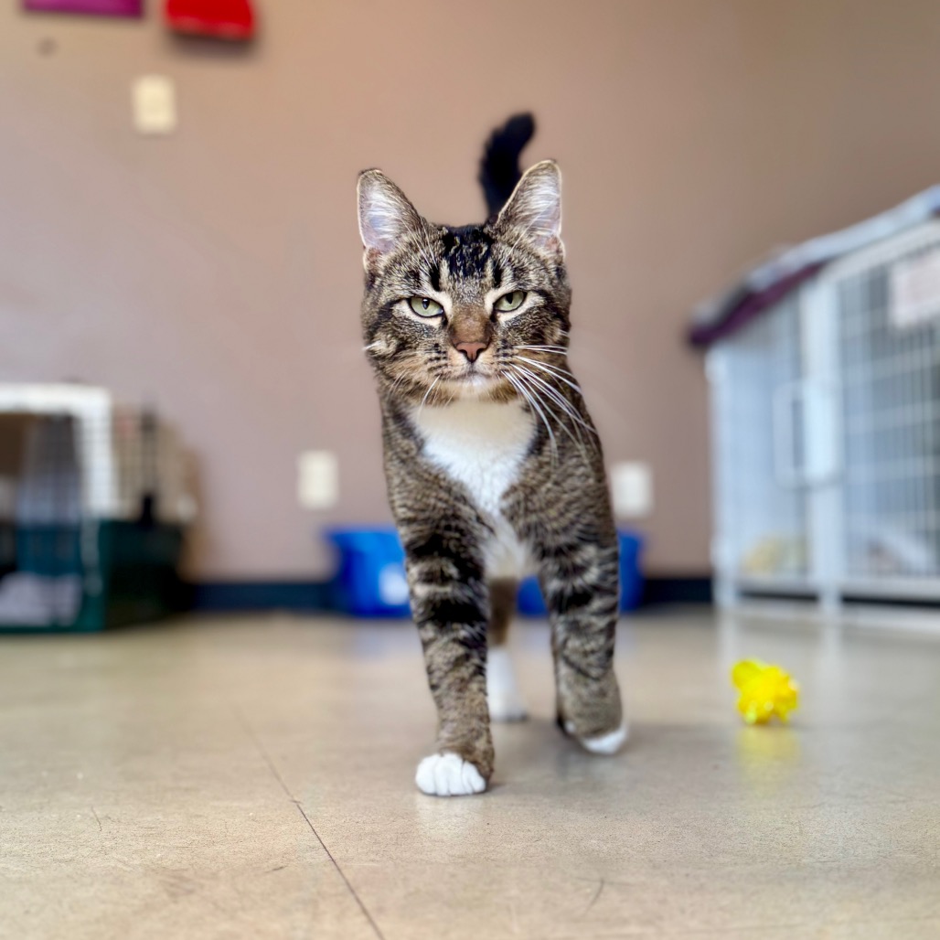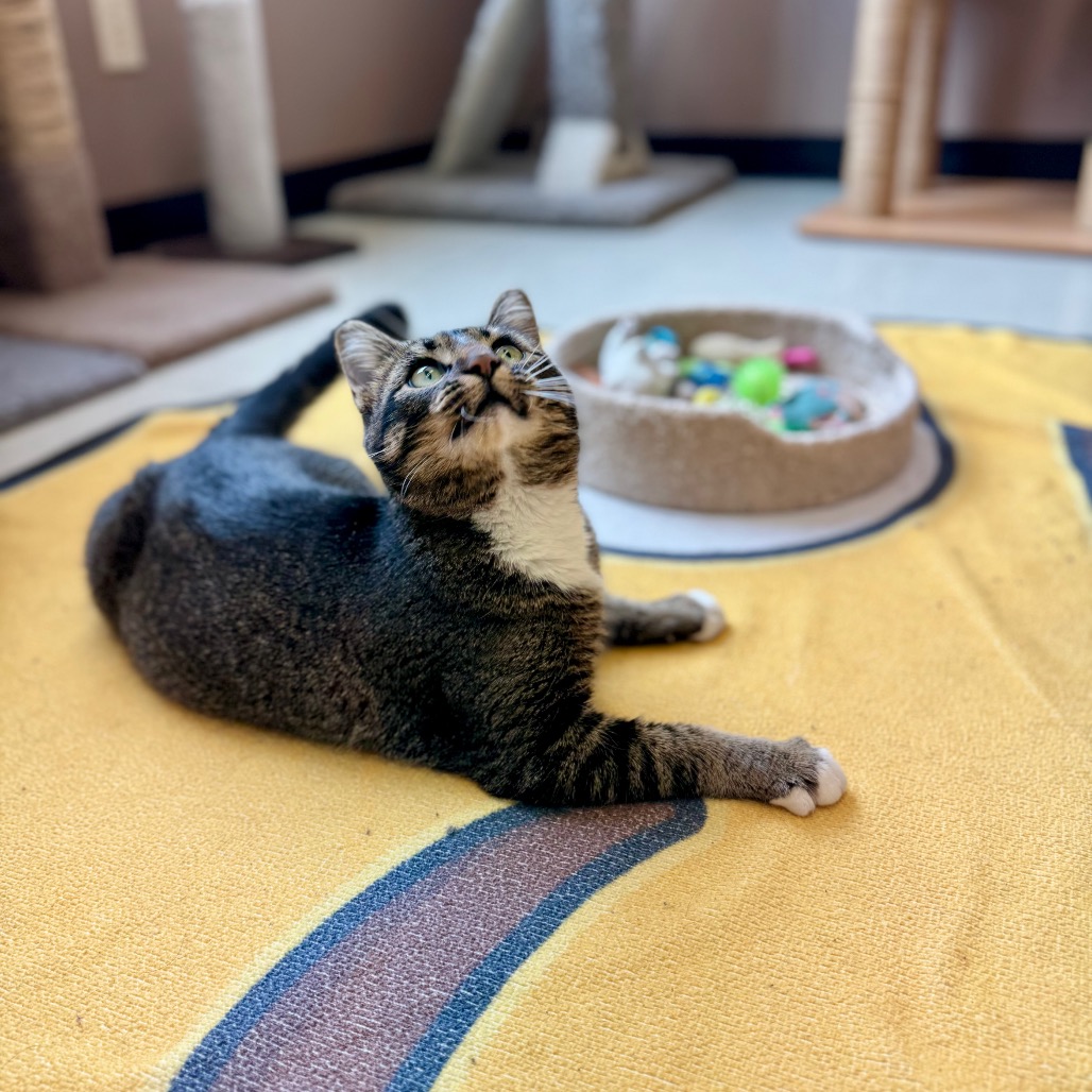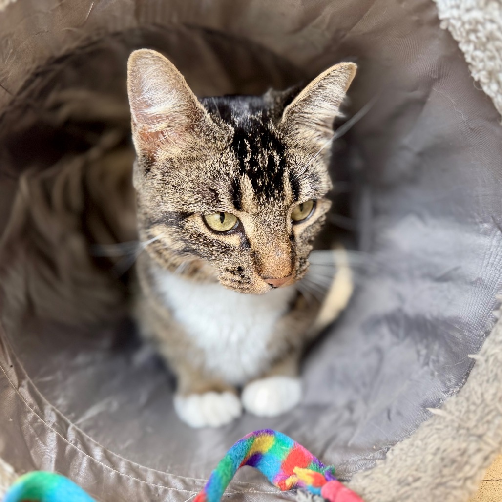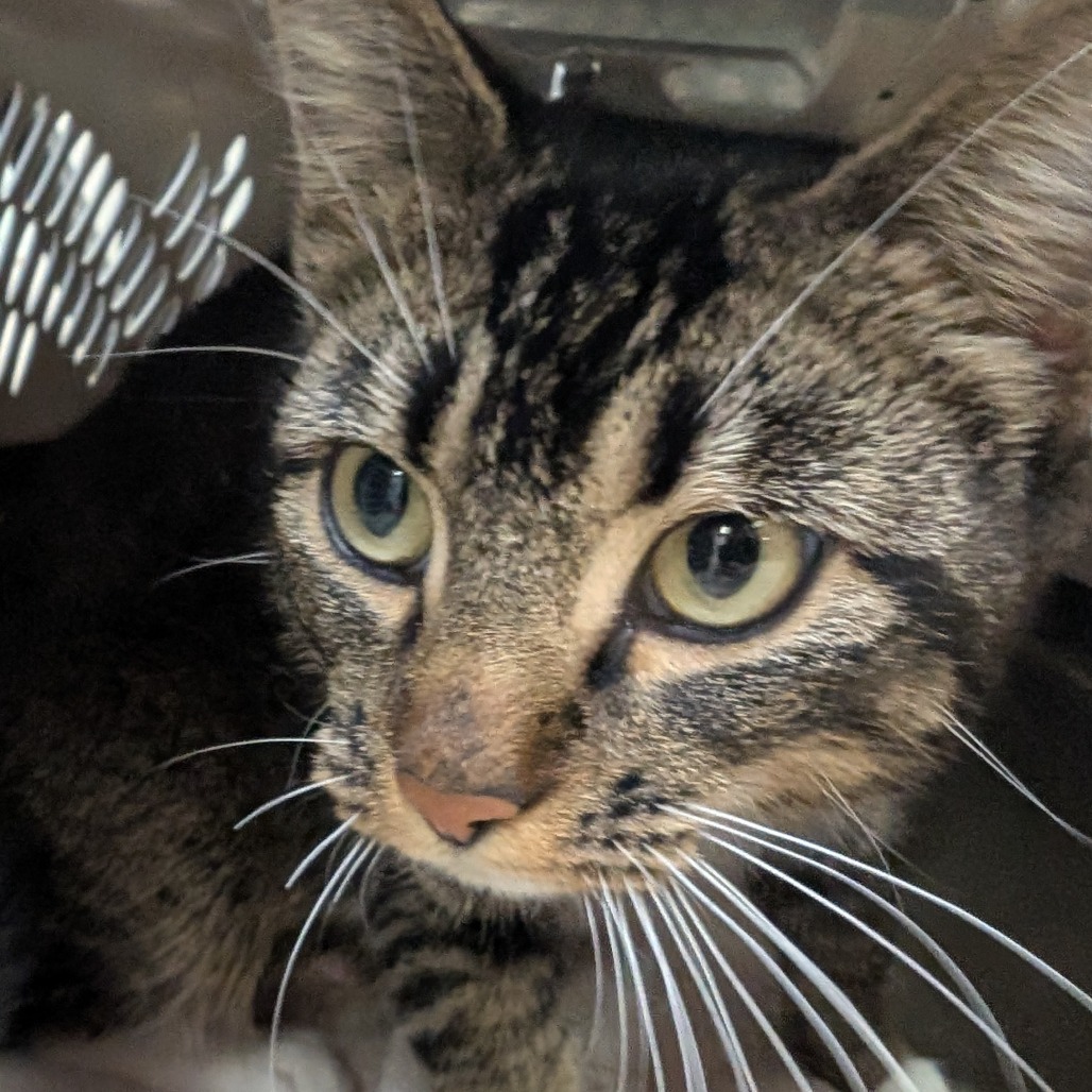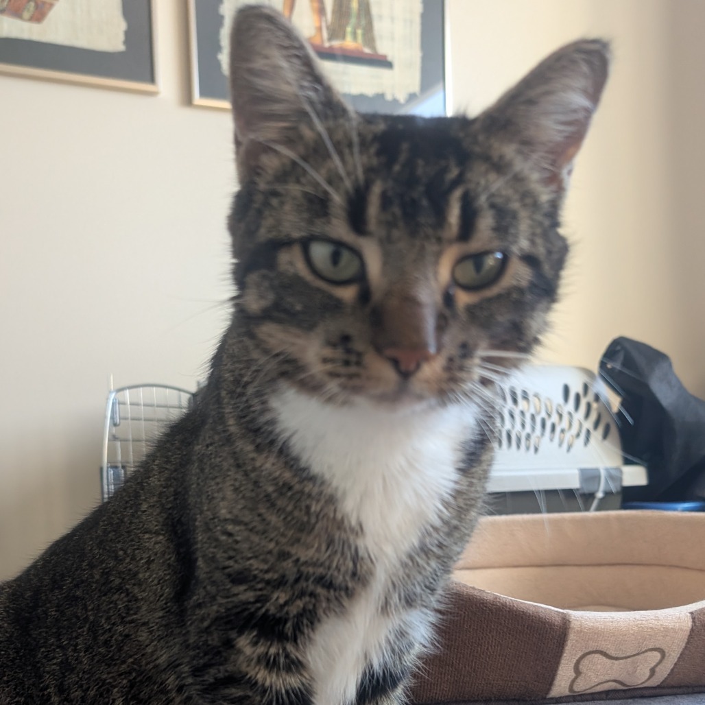 Hello everyone, Kitty here. I am a sweet Tabby girl who loves to be by her people. I am passed my kitten stages so no crazy shenanigans for me, just give me a comfy bed in a warm sun beam and I’ll be in heaven. I’m currently sharing a home with a dog but I prefer when she keeps her distance, so a home without a dog might be best. I am a very easy going girl otherwise and would love to meet you.