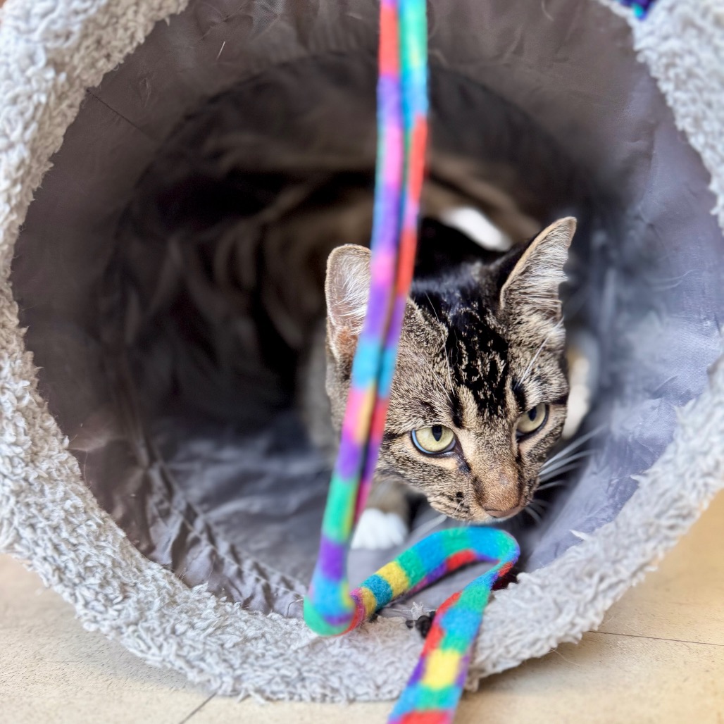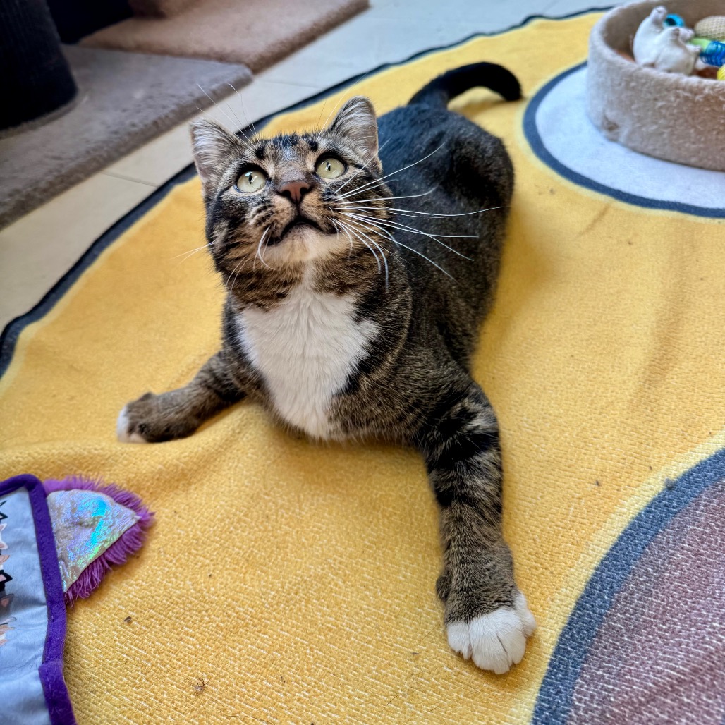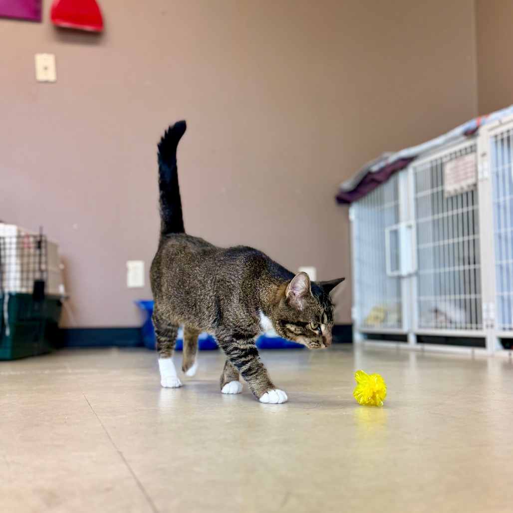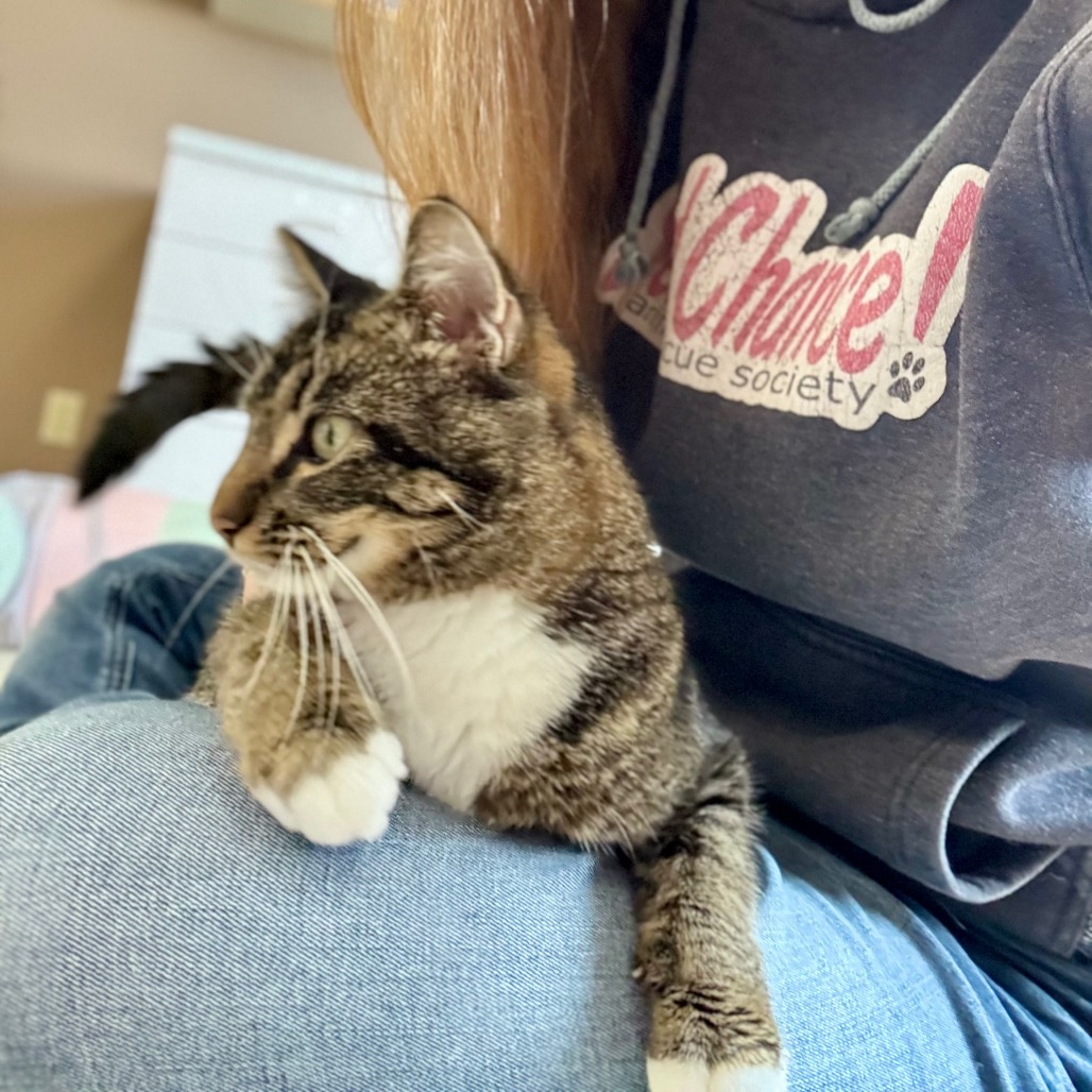 Hello everyone, Kitty here. I am a sweet Tabby girl who loves to be by her people. I am passed my kitten stages so no crazy shenanigans for me, just give me a comfy bed in a warm sun beam and I’ll be in heaven. I’m currently sharing a home with a dog but I prefer when she keeps her distance, so a home without a dog might be best. I am a very easy going girl otherwise and would love to meet you.