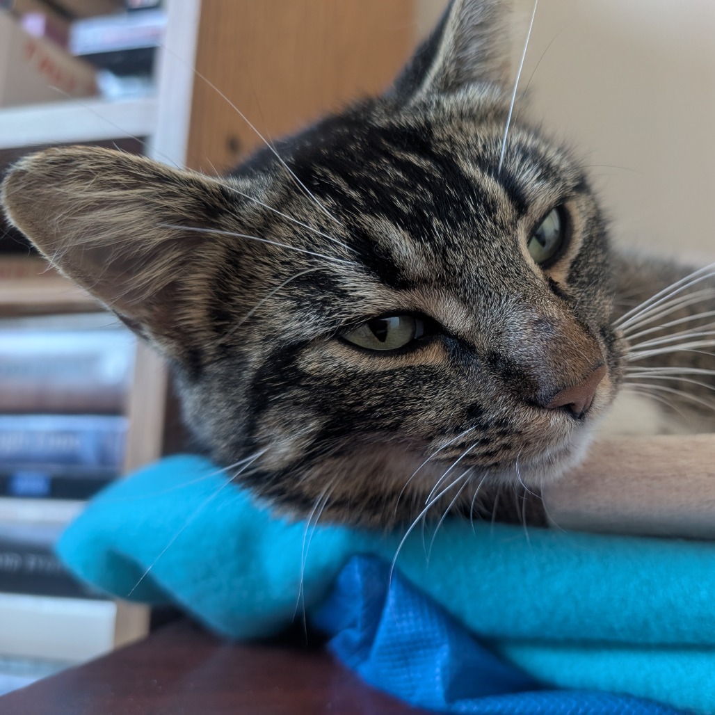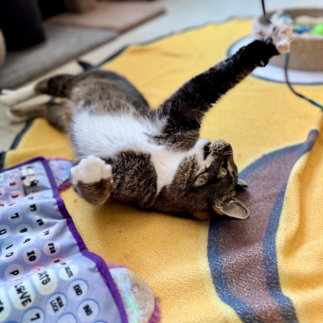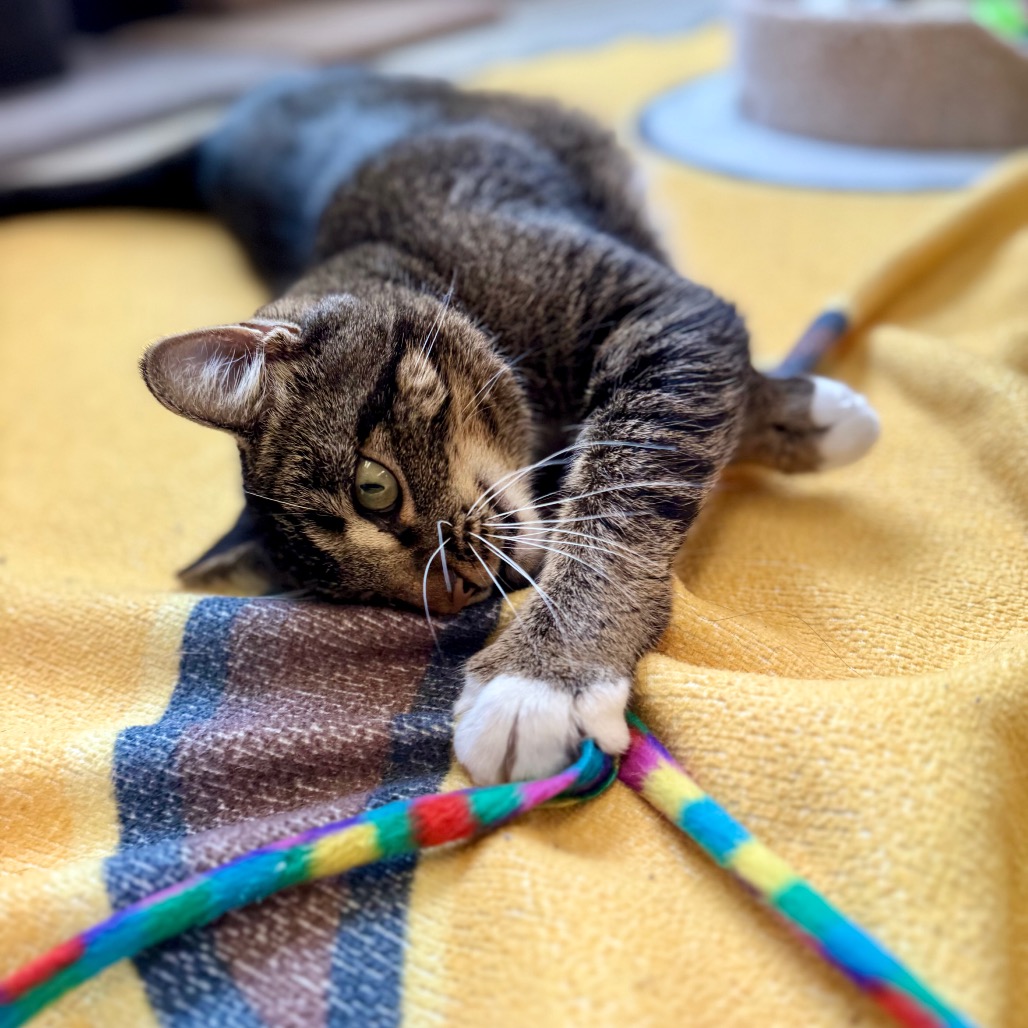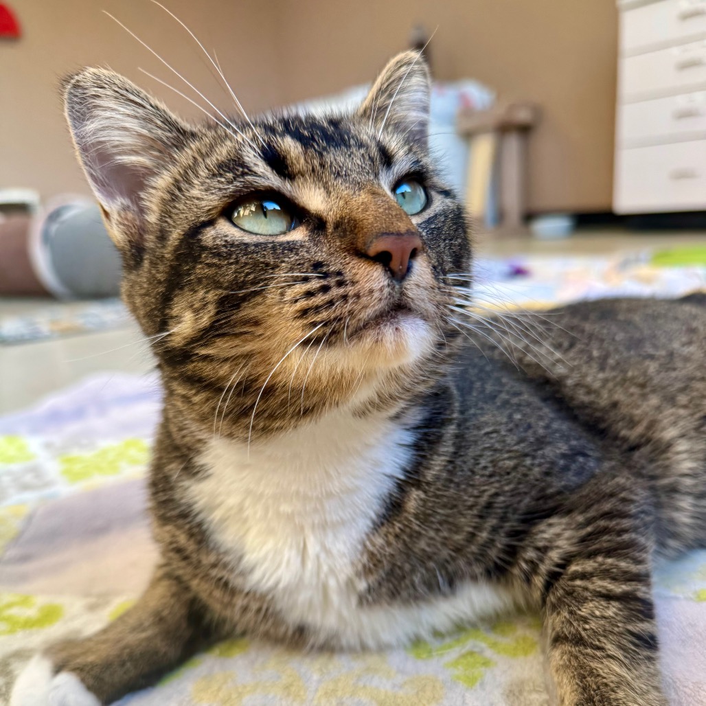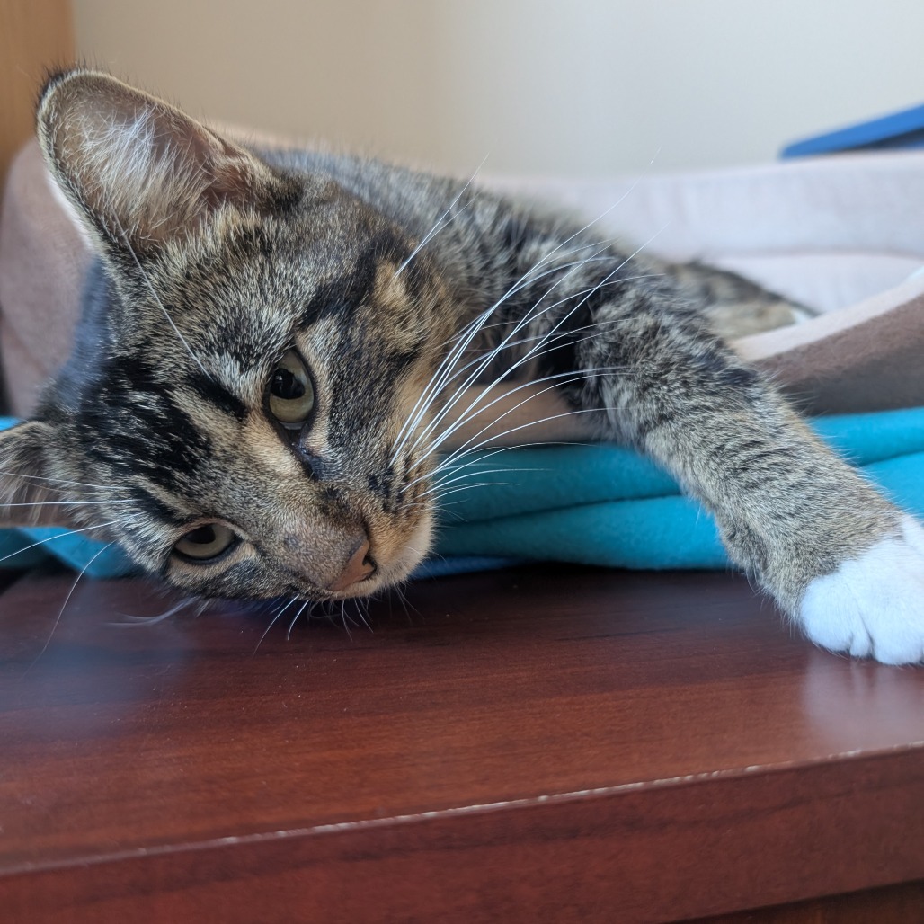 Hello everyone, Kitty here. I am a sweet Tabby girl who loves to be by her people. I am passed my kitten stages so no crazy shenanigans for me, just give me a comfy bed in a warm sun beam and I’ll be in heaven. I’m currently sharing a home with a dog but I prefer when she keeps her distance, so a home without a dog might be best. I am a very easy going girl otherwise and would love to meet you.
