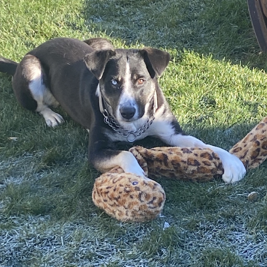 I’m a total cuddle bug and love being with people. I enjoy doing zoomies around the yard and sitting on what my foster family calls “the castle,” where I can look out over the fence and watch the world go by.