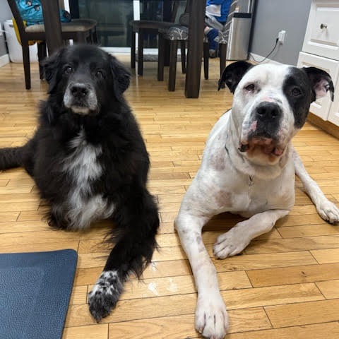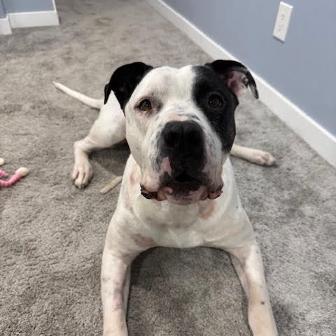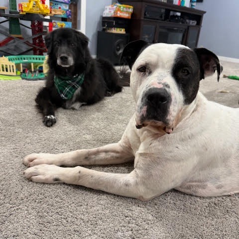 DB loves people, loves attention, and loves being close to his humans more than anything. He gets along great with the two large female dogs in his foster home and completely adores the two young kids (8 and 4 years old) that he plays with and loves tremendously. He never jumps up on people and always approaches new humans slowly and friendly with a wagging tail. When it comes time for food/treats, he always waits his turn and takes his treats SO gently. This fella is truly an amazing boy in so many ways. Due to his size this sweet boy needs to be on some easy/inexpensive pain killers (gabapentin & meloxicam) for his hips & joints to keep him comfortable and from being so stiff. The great thing though is that he takes his meds like a true champ without issue. He is also currently on a sensitive tummy kibble to just help him feel his best and is thriving. We know with the special kibble and meds, it sounds like this can be a bit much, but we promise you he’s 100% worth it. This boys’ cuddles and loving affection is honestly the most rewarding part of any day. He walks good on leash, loves a good car ride when joining you while you browse Canadian Tire or Winners and loves a good game of fetch in the backyard. DB is always extremely easy to please and just likes to be part of the family. He also is fully housetrained (not one accident in his foster home), sleeps all night on his dog bed without a peep and is a very easy-going guy that has never chewed anything when left out alone.
