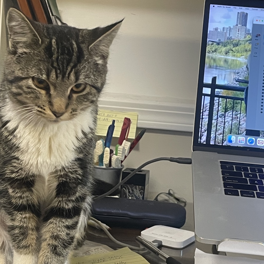 Box is healthy, litter-trained and ready to bring warmth and joy to your home. I'm just not sure about the 'help' with work part .... lol