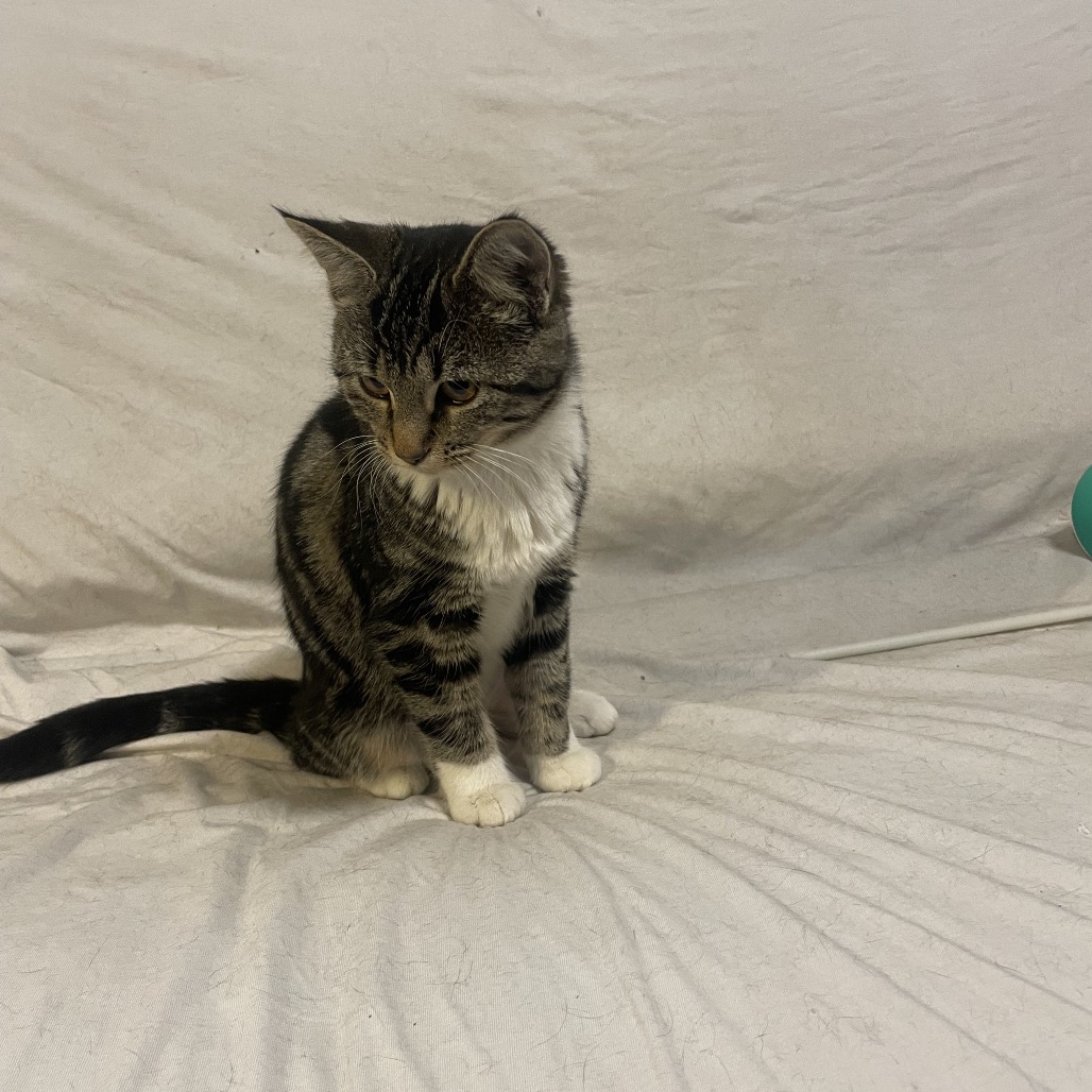 Note from foster mom - Box is a delight. She is curious, cuddly, and loves to explore new toys and cozy spots. She's very social and affectionate, and would love to find a home where she can continue to grow and play - maybe even with one of her sisters!