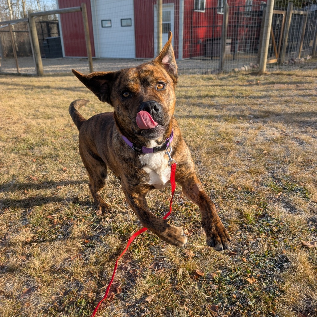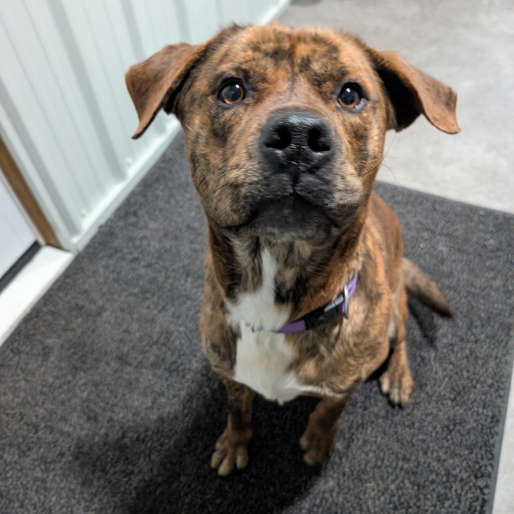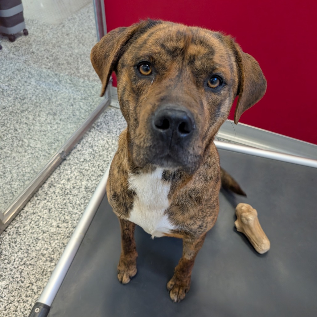 Well hello there. I'm Jangles! I recently found myself with SCARS after I needed to leave the community pound. Thank goodness for them! I am a young male bully breed mix that would love someone to hang with. I need some work on my manners, so someone who is interested in making me the best version of myself would be ideal. I have been good with female dogs that match my energy level and play style. I was cat tested and they think I might be a bit too interested in kitties, so no homes with cats in my future, please! I would do best with older kids (12+) as I am a bit of a bouncy boy. Do you think I'd be a match for your family? If so, please fill out an application. If not, tell your friends about me!