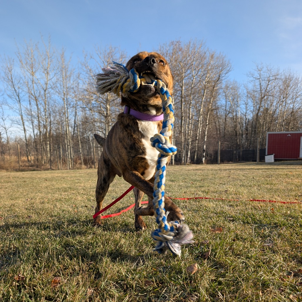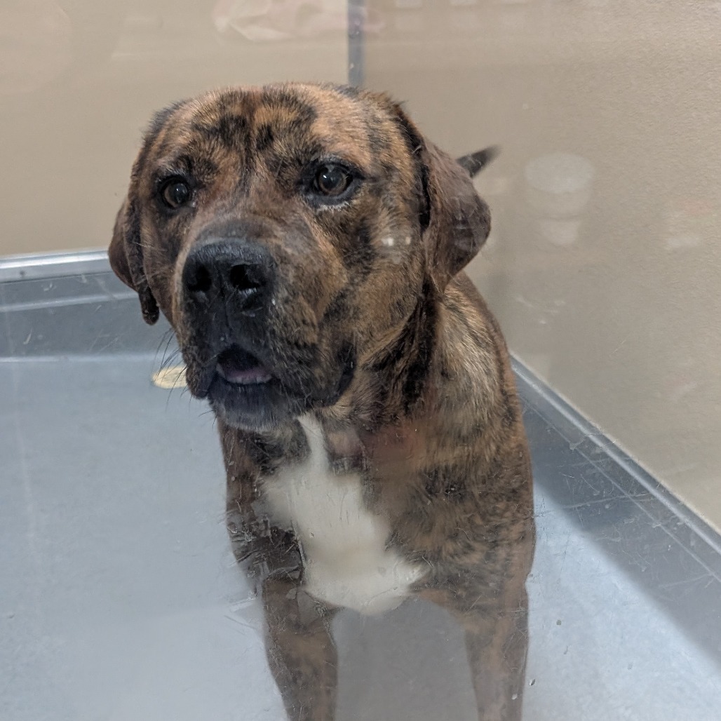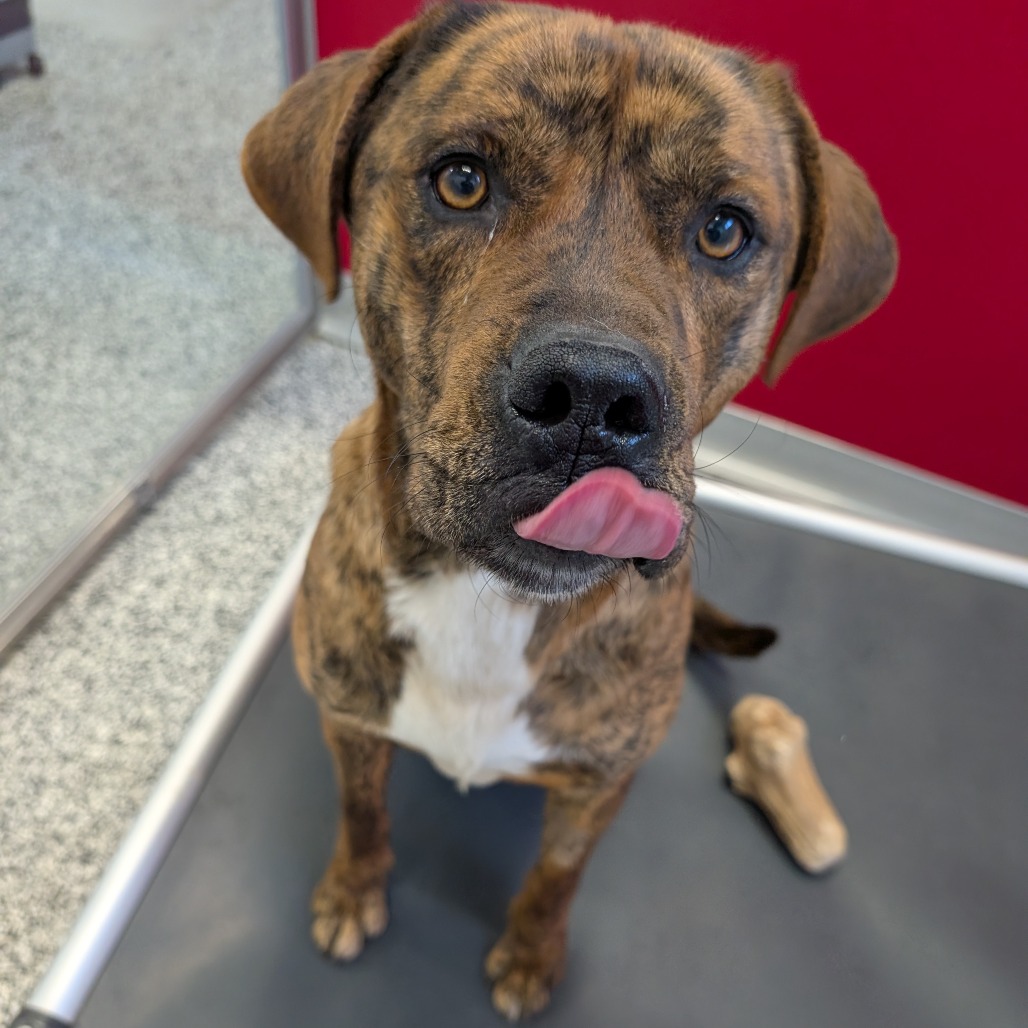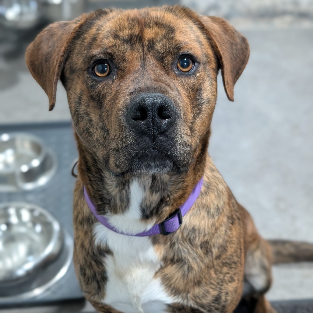 Well hello there. I'm Jangles! I recently found myself with SCARS after I needed to leave the community pound. Thank goodness for them! I am a young male bully breed mix that would love someone to hang with. I need some work on my manners, so someone who is interested in making me the best version of myself would be ideal. I have been good with female dogs that match my energy level and play style. I was cat tested and they think I might be a bit too interested in kitties, so no homes with cats in my future, please! I would do best with older kids (12+) as I am a bit of a bouncy boy. Do you think I'd be a match for your family? If so, please fill out an application. If not, tell your friends about me!