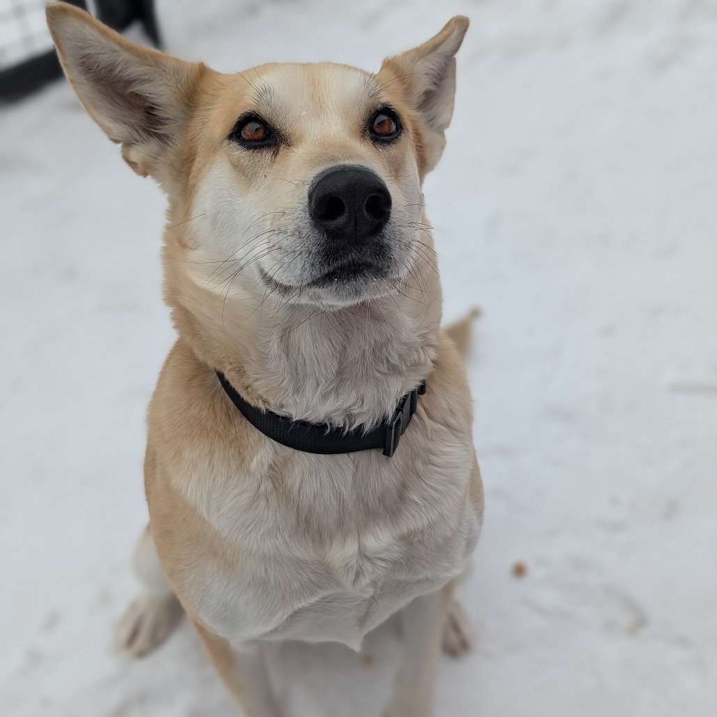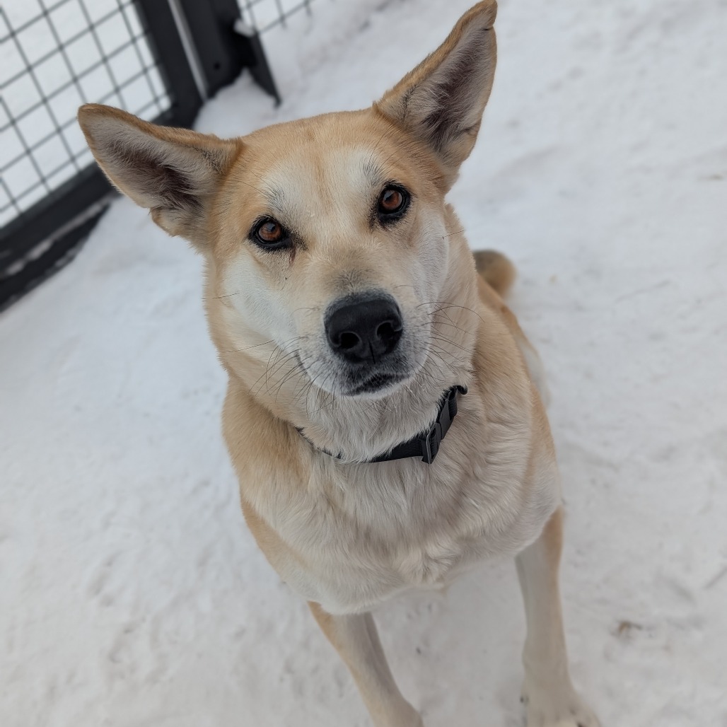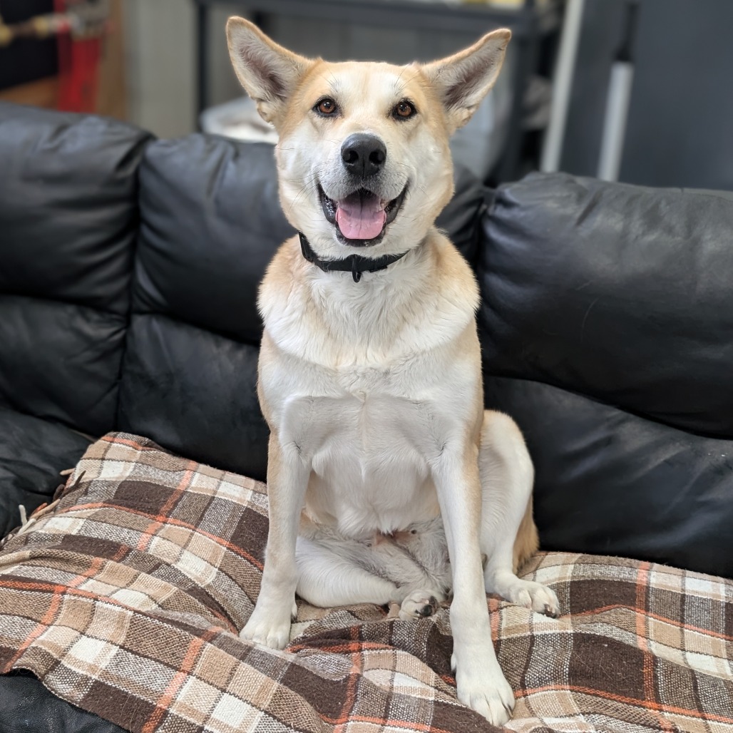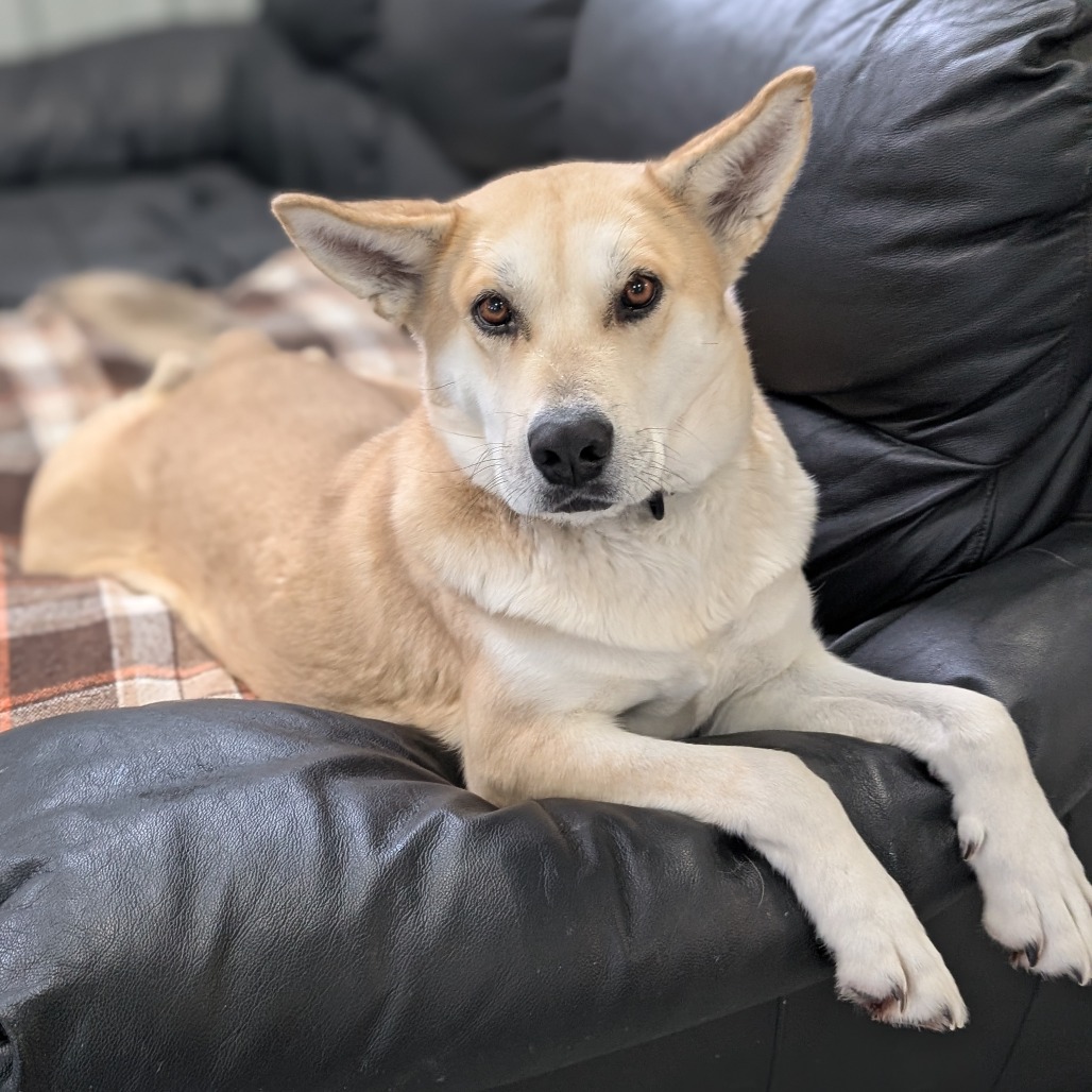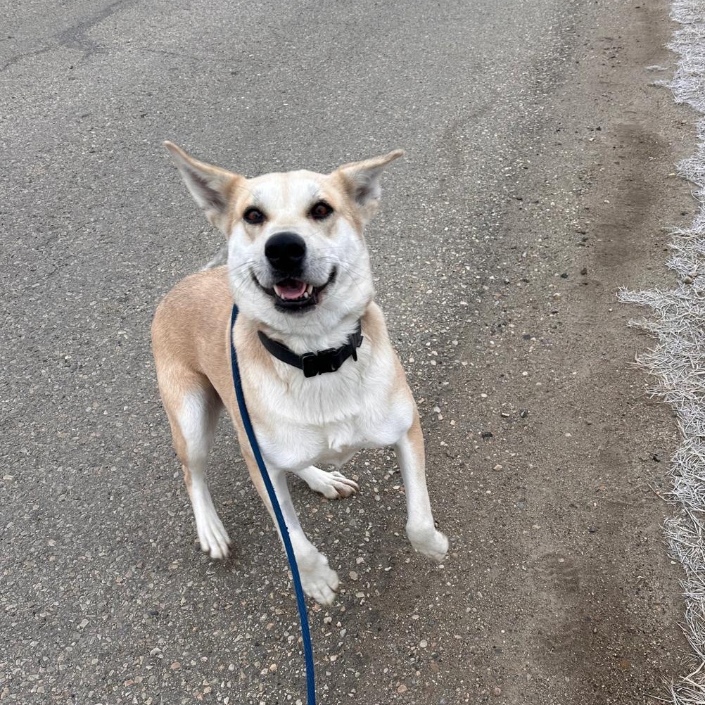 Meet Ghost! I'm a lovely husky mix that has THE SOFTEST FUR around. I enjoy going for walks and smelling the world around me. I am a cuddle bug and enjoy curling up on the sofa and having a good snooze. I am always down for an adventure, but I have the snooze feature too! I am still working on mastering the art of polite leash walks and remembering to keep all four paws on the floor, but I'm eager to learn and motivated by all the exciting things the world has to offer. Potty training? I've already nailed that part like a champ! If you’re looking for a fun companion who sees every day as an opportunity to love and explore, I might just be your perfect match.
