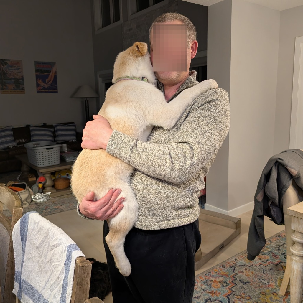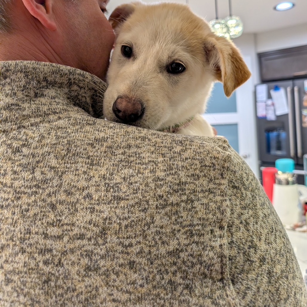 Chewing on my foster sister’s face and ears (she secretly loves it, I’m sure.)