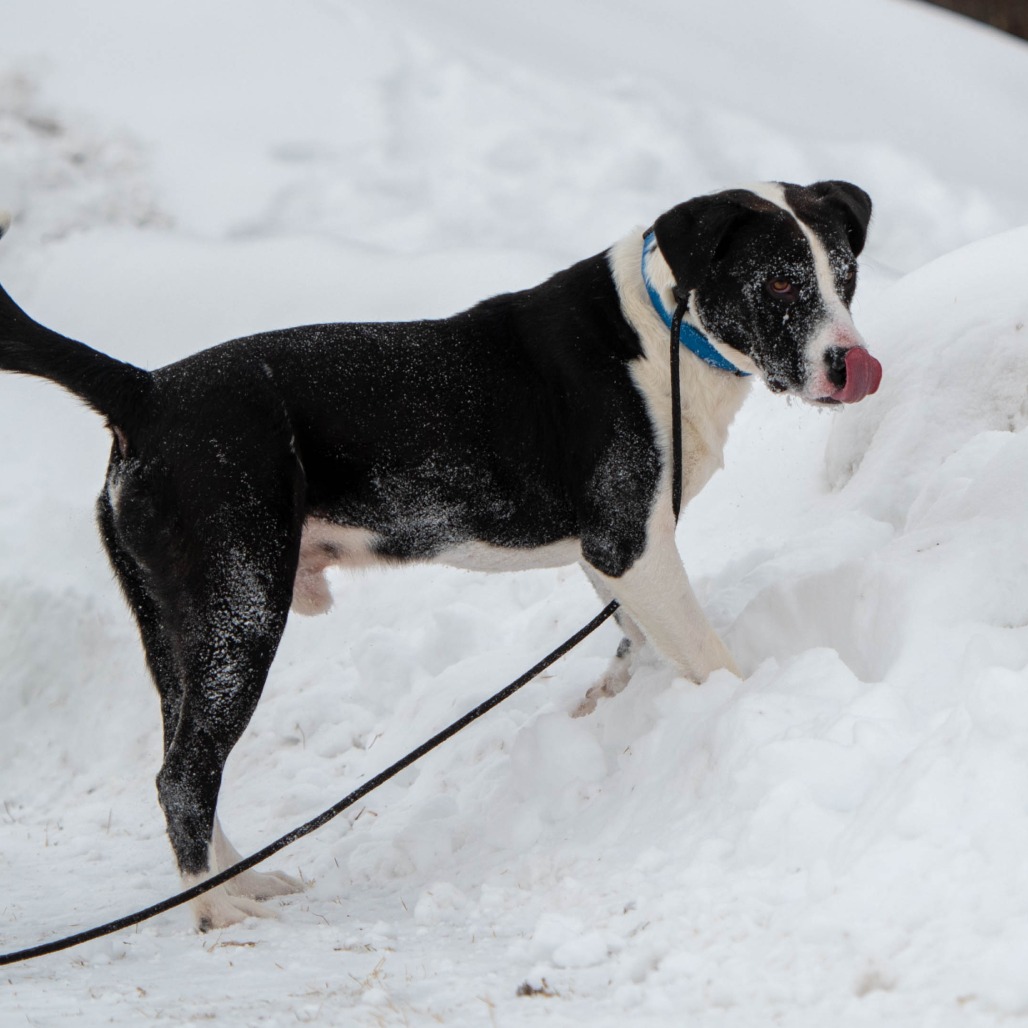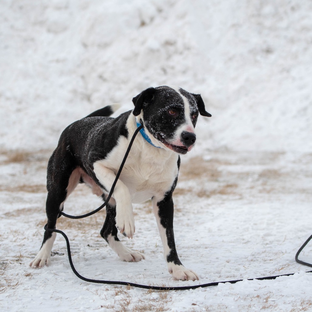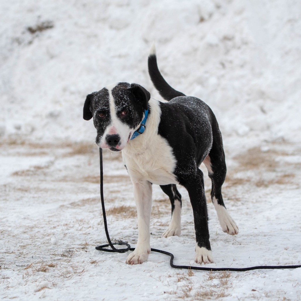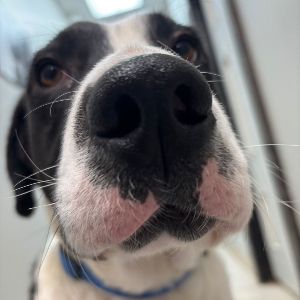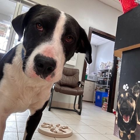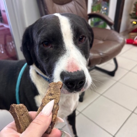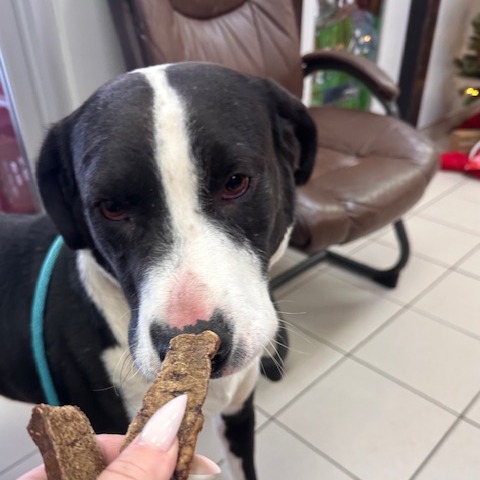 Theo is highly food-motivated and absolutely loves learning new things, especially when treats are part of the deal. He already does well on leash and would likely thrive with a job or structured activities that let him use his brain and channel his enthusiasm—think enrichment, training games, or even beginner-level dog sports.