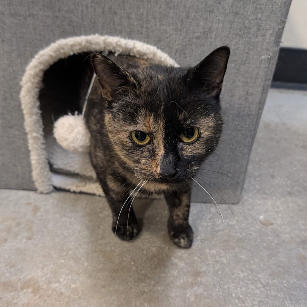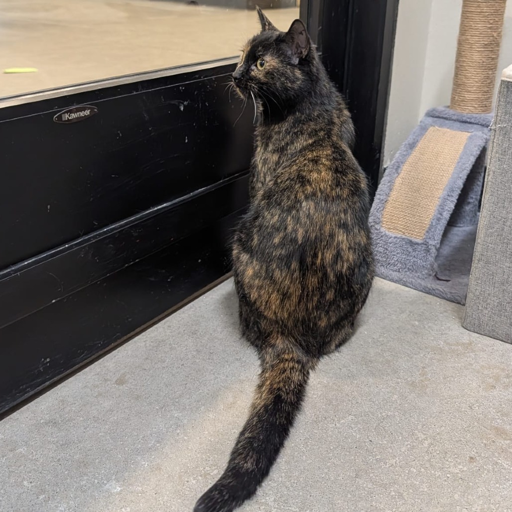 Tali is a young adult cat with a confident spirit and a clear sense of what she wants. She’s affectionate, but very much on her own terms. When she decides it’s time for pets, she’ll approach with a soft head bump or a slow, curious blink, inviting gentle strokes along her cheeks and forehead. She enjoys cozy companionship, but always appreciates having the freedom to come and go as she pleases.