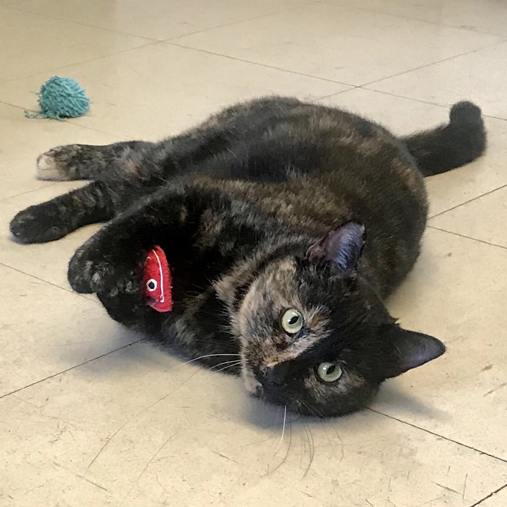 Tali thrives in a calm, predictable environment where she can lounge in sunny spots, observe the world from a windowsill, and explore at her own pace. She’s playful in short bursts—especially with toys she can chase or bat around—and she has a charming habit of announcing her presence with quiet chirps and trills.