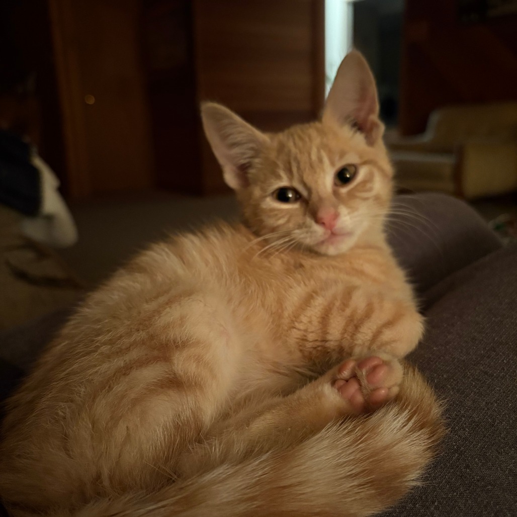 Hi! Meet the cuddliest boy on the block. My foster mom says I’m completely obsessed with humans. Toys are fun, but people are my absolute favorite! If you sit down, I’ll be in your lap before you even get comfy.